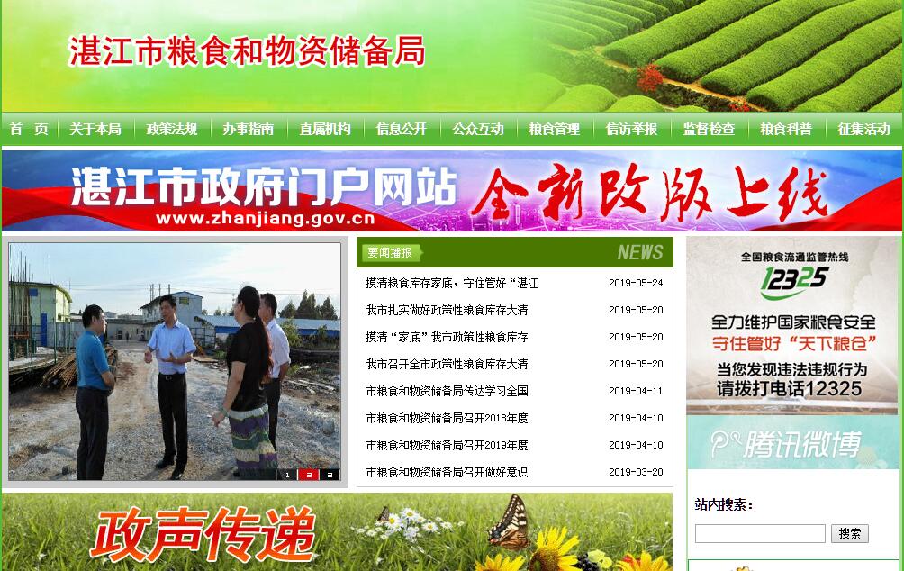 湛江市糧食和物資儲備局主要職責:(一)貫徹執(zhí)行國家和省政府糧食工作的各項方針、政策和法規(guī),擬訂糧食工作的規(guī)范性文件并組織實施。(二)按照“米袋子”政府負責制的目標,堅持“逐級平衡、分級管理”的原則,編制和組織實施糧食購銷、儲備年度計劃。(三)提出糧食儲備布局規(guī)劃并組織實施;抓好國家、省、市直屬糧庫和縣(市)糧庫建設(shè)及維修改造,提高倉儲能力;按照國家糧食質(zhì)量標準,研究開發(fā)和推廣應(yīng)用先進儲糧技術(shù),管好市級儲備糧的進出輪換,并代管好國家特種糧油儲備、專項糧食儲備以及省級地方糧油儲備;檢查督促各縣(市)糧油儲備計劃的落實;提高儲備糧的保管、運輸?shù)目萍妓?,確保儲糧安全。(四)保障軍隊糧油供應(yīng)。組織做好軍供糧油質(zhì)量檢查,軍糧價格結(jié)算和軍供網(wǎng)點的布局、建設(shè)、維修改造。指導(dǎo)和檢查城鄉(xiāng)糧食的供需狀況,擬訂搶險救災(zāi)、水庫移民、貧困地區(qū)和國家重點建設(shè)項目等的糧食供應(yīng)措施,并組織監(jiān)督實施。(五)負責省、市間糧油的調(diào)撥運輸管理,確保轄區(qū)內(nèi)的糧食總量平衡。(六)會同有關(guān)部門對糧油市場、糧油價格進行調(diào)控管理;貫徹執(zhí)行國家糧油質(zhì)量標準、糧油檢測制度和辦法,檢查、監(jiān)督和指導(dǎo)糧油的安全儲藏。(七)組織實施糧食財務(wù)會計制度、匯編財務(wù)報表,指導(dǎo)、監(jiān)督糧食系統(tǒng)財會工作;編報糧油統(tǒng)計工作。(八)會同有關(guān)部門為政府籌措和管理糧食風險基金和糧食各項補貼資金。(九)管理局直屬單位,負責抓好直屬單位干部職工的思想政治教育和業(yè)務(wù)知識培訓,推進所屬單位物質(zhì)文明和精神文明建設(shè)。(十)承辦市政府、省發(fā)展計劃委員會(糧食局)、中儲糧廣州分公司、省儲備糧管理總公司交辦的其他事項。