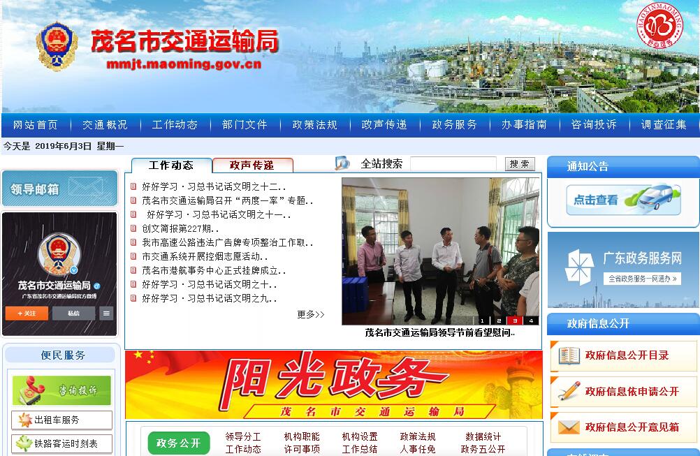 茂名市交通運輸局是主管全市公路和水路交通的人民政府組成部門。其主要職責(zé):(一)貫徹執(zhí)行國家有關(guān)交通行業(yè)的政策法規(guī),組織草擬全市交通、郵電行業(yè)的地方規(guī)范性文件;組織制定全市交通發(fā)展戰(zhàn)略、中長期發(fā)展規(guī)劃并組織實施。(二)負責(zé)茂名地區(qū)鐵路、公路、水路、航空、城市公共客運交通、管道等各種運輸方式的銜接工作;組織、協(xié)調(diào)關(guān)系國計民生的重點物資運輸和重大節(jié)假日期間的旅客運輸。(三)負責(zé)征收國家有關(guān)交通規(guī)費及做好規(guī)費的稽查工作。(四)負責(zé)茂名城市公共客運交通、茂名地區(qū)公路客貨運輸、搬運裝卸、運輸服務(wù)業(yè)(包括為道路運輸服務(wù)的客貨運站場、市區(qū)公共停車場、客貨運代理、配載、中轉(zhuǎn),貨物包裝倉儲理貨、堆存、運輸信息咨詢服務(wù),機動車駕駛員、從業(yè)人員培訓(xùn),機動車輛租賃、清洗和保管等)、機動車維修業(yè)(包括機動車綜合性能檢測)、物流業(yè)和聯(lián)運業(yè)等的行業(yè)管理。(五)負責(zé)茂名地區(qū)公路建設(shè)和養(yǎng)護的管理工作;負責(zé)路橋及隧道收費站設(shè)置的審核申報;審批茂名地區(qū)公路建設(shè)養(yǎng)護事業(yè)費使用計劃,并監(jiān)督實施。(六)負責(zé)審批茂名地區(qū)水運基礎(chǔ)設(shè)施的建設(shè)和維護的年度計劃以及水路運輸、水路運輸服務(wù)業(yè)(包括船舶代理、外輪理貨、通信導(dǎo)航、引航等)、港口碼頭、航道航政、水域岸線使用、船舶設(shè)計資質(zhì)認可、水上設(shè)施檢驗、水上交通安全管理等的行業(yè)管理工作。(七)組織制定我市交通系統(tǒng)的科技政策、技術(shù)標(biāo)準(zhǔn)和規(guī)范;組織交通科技項目開發(fā)、推動行業(yè)科技進步;負責(zé)交通環(huán)境保護工作;指導(dǎo)交通行業(yè)中等教育、成人教育和技術(shù)教育;歸口管理道路、水路從業(yè)人員崗位技術(shù)培訓(xùn)工作;負責(zé)道路、水路交通無線電管理。(八)指導(dǎo)交通行業(yè)體制改革,對交通運輸市場和交通基本建設(shè)市場實施監(jiān)督、管理和調(diào)控,負責(zé)公路、水路、地方鐵路、機場、管道、站場等交通工程的質(zhì)量監(jiān)督、工程監(jiān)察、竣工驗收和造價管理,維護公路、水路等交通運輸和交通基本建設(shè)市場的正常秩序,引導(dǎo)交通行業(yè)優(yōu)化結(jié)構(gòu)、協(xié)調(diào)發(fā)展。(九)組織、協(xié)調(diào)和參與管理公路、水路交通行業(yè)利用外資工作,開展國際交通經(jīng)濟技術(shù)業(yè)務(wù)的合作與交流。(十)指導(dǎo)、管理交通系統(tǒng)的安全工作;負責(zé)交通戰(zhàn)備工作。(十一)組織協(xié)調(diào)國家、省在茂名的郵政、電信、鐵路部門的工作關(guān)系。(十二)承辦市政府和省交通廳交辦的其他事項。
