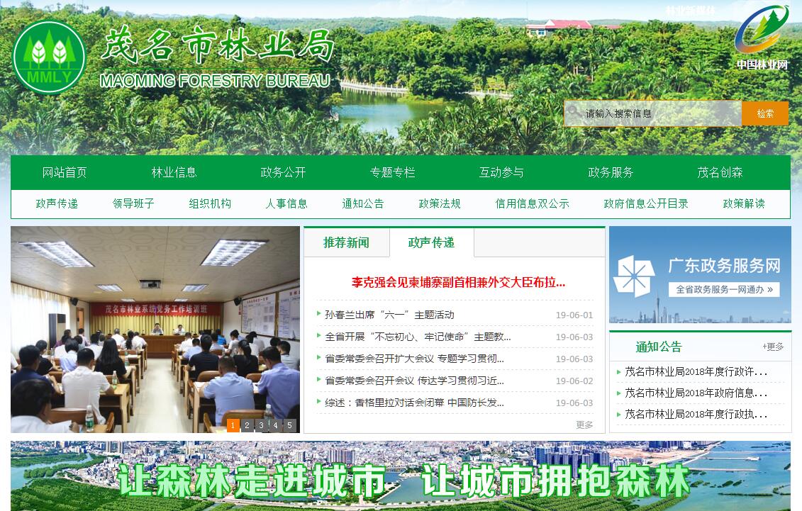 茂名市林業(yè)局為市人民政府直屬機(jī)構(gòu)。其主要職責(zé):(一)貫徹執(zhí)行國家和省有關(guān)林業(yè)工作的方針政策和法律法規(guī),組織起草林業(yè)建設(shè)的地方規(guī)范性文件并監(jiān)督實(shí)施;編制林業(yè)建設(shè)總體規(guī)劃、年度計(jì)劃并組織實(shí)施;監(jiān)督管理全市林業(yè)及其生態(tài)建設(shè);組織開展森林、濕地和陸生野生動(dòng)植物資源的調(diào)查、動(dòng)態(tài)監(jiān)測和評估,并統(tǒng)一發(fā)布相關(guān)信息;承擔(dān)林業(yè)生態(tài)文明建設(shè)的有關(guān)工作;協(xié)助開展有關(guān)國際公約的履約工作。(二)組織、協(xié)調(diào)、指導(dǎo)和監(jiān)督全市造林綠化工作。組織、指導(dǎo)和監(jiān)督全民義務(wù)植樹、生態(tài)公益林建設(shè)和效益補(bǔ)償工作,依法推動(dòng)退耕還林工作,組織、指導(dǎo)各類公益林和商品林的培育、封山育林和以植樹種草等生物措施防治水土流失工作,指導(dǎo)城市林業(yè)建設(shè);承擔(dān)林業(yè)應(yīng)對氣候變化的相關(guān)工作。(三)承擔(dān)森林資源保護(hù)發(fā)展監(jiān)督管理的責(zé)任。組織編制森林采伐限額并監(jiān)督執(zhí)行,監(jiān)督檢查林木憑證采伐、運(yùn)輸,組織、指導(dǎo)林地、林權(quán)管理,組織實(shí)施林權(quán)登記、發(fā)證工作,擬訂林地保護(hù)利用總體規(guī)劃并監(jiān)督實(shí)施,承擔(dān)林地征用、占用的審核工作。(四)組織、協(xié)調(diào)、指導(dǎo)和監(jiān)督全市濕地保護(hù)工作。組織擬訂全市性、區(qū)域性濕地保護(hù)規(guī)劃,組織實(shí)施建立濕地保護(hù)小區(qū)、濕地公園等保護(hù)管理工作,負(fù)責(zé)紅樹林資源以及灘涂劃入生態(tài)公益林規(guī)劃區(qū)和劃為紅樹林、鳥類自然保護(hù)區(qū)的監(jiān)督管理。(五)組織、協(xié)調(diào)、指導(dǎo)和監(jiān)督全市陸生野生動(dòng)植物資源的保護(hù)和開發(fā)利用。研究提出主管的陸生野生動(dòng)植物保護(hù)名錄的調(diào)整意見;負(fù)責(zé)陸生野生動(dòng)植物及其產(chǎn)品進(jìn)出口管理工作;監(jiān)督管理林業(yè)生物種質(zhì)資源、植物新品種保護(hù),按分工負(fù)責(zé)生物多樣性保護(hù)的有關(guān)工作。(六)負(fù)責(zé)林業(yè)系統(tǒng)自然保護(hù)區(qū)的監(jiān)督管理。在國家、省、市自然保護(hù)區(qū)區(qū)劃、規(guī)劃的指導(dǎo)下,承擔(dān)森林、陸生野生動(dòng)植物和有關(guān)濕地類型自然保護(hù)區(qū)以及森林公園的建設(shè)和管理工作。(七)承擔(dān)推進(jìn)林業(yè)改革和維護(hù)經(jīng)營者林業(yè)合法權(quán)益的工作。擬訂集體林權(quán)制度、國有林場等重大林業(yè)改革意見并指導(dǎo)監(jiān)督實(shí)施,指導(dǎo)、監(jiān)督林地承包經(jīng)營和林權(quán)流轉(zhuǎn),指導(dǎo)協(xié)調(diào)林權(quán)糾紛調(diào)處工作。(八)組織、協(xié)調(diào)、指導(dǎo)全市林業(yè)產(chǎn)業(yè)發(fā)展。擬訂林業(yè)產(chǎn)業(yè)發(fā)展政策、規(guī)劃和技術(shù)標(biāo)準(zhǔn)并組織實(shí)施,指導(dǎo)、協(xié)調(diào)林業(yè)企業(yè)原材料基地建設(shè)、林業(yè)綜合開發(fā)和森林生態(tài)旅游的開發(fā)、建設(shè)、管理工作。(九)組織、協(xié)調(diào)、指導(dǎo)和監(jiān)督全市森林資源安全工作。組織、協(xié)調(diào)、指導(dǎo)和監(jiān)督森林防撲火、林業(yè)行政執(zhí)法和林業(yè)重大違法案件查處等工作,指導(dǎo)、管理森林公安工作,指導(dǎo)林業(yè)有害生物的防治、檢疫工作。(十)組織、指導(dǎo)建立和實(shí)施林業(yè)及其生態(tài)建設(shè)的生態(tài)補(bǔ)償制度。參與編制部門預(yù)算并組織實(shí)施,提出林業(yè)財(cái)政性資金安排意見,參與編制政策性森林保險(xiǎn)、森林專項(xiàng)貸款計(jì)劃,監(jiān)督管理市級林業(yè)國有資產(chǎn)和林業(yè)基金,指導(dǎo)林業(yè)基礎(chǔ)設(shè)施建設(shè)、森林資源資產(chǎn)流轉(zhuǎn),監(jiān)督指導(dǎo)林區(qū)公路建設(shè)和維護(hù)管理。(十一)組織、指導(dǎo)林業(yè)及其生態(tài)建設(shè)的科學(xué)研究、技術(shù)推廣、宣傳教育和交流與合作,直接管理市屬國有林場工作,指導(dǎo)林業(yè)基層工作機(jī)構(gòu)的建設(shè)和管理。(十二)指導(dǎo)縣(市、區(qū))林業(yè)行政主管部門的業(yè)務(wù)工作;管理、指導(dǎo)直屬事業(yè)單位的工作。(十三)承擔(dān)市綠化委員會的日常工作。(十四)承辦市人民政府和省林業(yè)局交辦的其他事項(xiàng)。