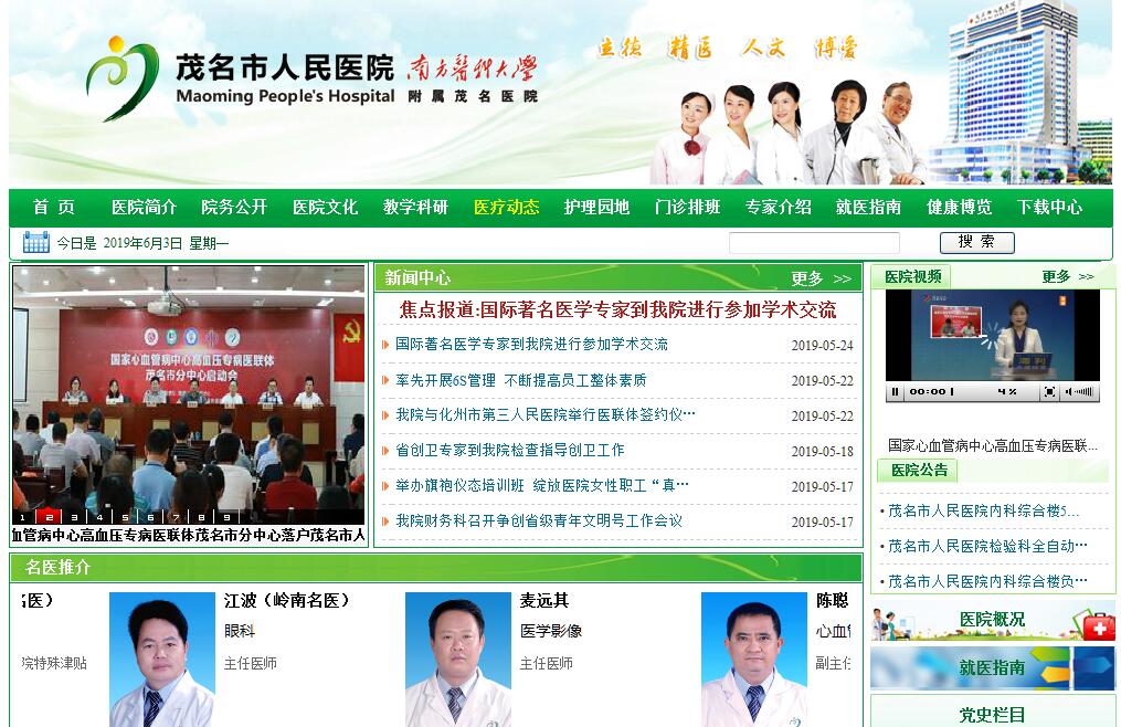 茂名市人民醫(yī)院是集醫(yī)療、教學(xué)、科研于一體的大型三級(jí)甲等綜合醫(yī)院,是南方醫(yī)科大學(xué)附屬醫(yī)院、廣東醫(yī)科大學(xué)茂名臨床醫(yī)學(xué)院;醫(yī)院是國(guó)際緊急救援中心網(wǎng)絡(luò)醫(yī)院,是中山大學(xué)孫逸仙紀(jì)念醫(yī)院醫(yī)療技術(shù)協(xié)作醫(yī)院、國(guó)家級(jí)早期胃癌篩查研究協(xié)同網(wǎng)絡(luò)協(xié)作中心、李兆申院士工作站、西京消化病醫(yī)院茂名整合醫(yī)學(xué)中心、茂名地區(qū)首家精準(zhǔn)醫(yī)學(xué)中心、胸痛中心、卒中中心;醫(yī)院是國(guó)家愛(ài)嬰醫(yī)院,是國(guó)家衛(wèi)生計(jì)生委內(nèi)鏡與微創(chuàng)醫(yī)學(xué)普通外科培訓(xùn)基地、中國(guó)衛(wèi)生計(jì)生委腦卒中高危人群篩查與干預(yù)項(xiàng)目基地、中華醫(yī)學(xué)會(huì)心血管病介入治療粵西地區(qū)培訓(xùn)基地、中國(guó)衛(wèi)生計(jì)生委“骨質(zhì)疏松癥診療技術(shù)協(xié)作基地”、中國(guó)超聲醫(yī)學(xué)工程學(xué)會(huì)茂名市人民醫(yī)院血管超聲培訓(xùn)基地;醫(yī)院是中山大學(xué)、南方醫(yī)科大學(xué)、廣東醫(yī)科大學(xué)碩士研究生聯(lián)合培養(yǎng)基地,是全國(guó)住院醫(yī)師規(guī)范化培訓(xùn)基地(主基地)。醫(yī)院以學(xué)科齊全、技術(shù)力量雄厚、特色??仆怀?、多學(xué)科綜合優(yōu)勢(shì)強(qiáng)大享譽(yù)省內(nèi)外,是評(píng)為中國(guó)地級(jí)城市醫(yī)院競(jìng)爭(zhēng)力排行榜100強(qiáng)醫(yī)院。醫(yī)院始建于1960年,前身是廣州銀行醫(yī)院,1960年8月為支援茂名油城建設(shè)遷至茂名,改名為茂名市人民醫(yī)院。目前,醫(yī)院占地面積10萬(wàn)平方米。在人員配置方面,在職員工2300多人,其中高級(jí)職稱人員近400人,博士、碩士研究生100多人,碩士研究生導(dǎo)師近40人。醫(yī)院年門(mén)診總數(shù)超130萬(wàn)人次,年住院總數(shù)超9萬(wàn)人次,年手術(shù)量3萬(wàn)多例。醫(yī)院編制病床2400張,開(kāi)設(shè)科室96個(gè),其中心血管內(nèi)科、神經(jīng)內(nèi)科、康復(fù)醫(yī)學(xué)科、消化內(nèi)科是廣東省臨床重點(diǎn)專科,腫瘤科、感染科是廣東省重點(diǎn)扶持建設(shè)臨床???,其他優(yōu)勢(shì)專科還有微創(chuàng)腹腔鏡外科、生殖醫(yī)學(xué)中心、骨外科、燒傷與創(chuàng)面修復(fù)科、重癥醫(yī)學(xué)科等。醫(yī)院有多個(gè)特色醫(yī)療中心和機(jī)構(gòu),如:廣東首家與香港大學(xué)聯(lián)合成立的手外科治療中心,粵西首個(gè)生殖醫(yī)學(xué)中心、產(chǎn)前診斷中心、西京消化病醫(yī)院茂名整合醫(yī)學(xué)中心、國(guó)家級(jí)早期胃癌篩查研究協(xié)同網(wǎng)絡(luò)協(xié)作中心,茂名地區(qū)首家精準(zhǔn)醫(yī)學(xué)中心、胸痛中心、卒中中心,茂名地區(qū)唯一一家血友病定點(diǎn)醫(yī)療機(jī)構(gòu),還有聽(tīng)力診斷中心等等。在醫(yī)療技術(shù)方面,近年來(lái)茂名市人民醫(yī)院大力引進(jìn)國(guó)內(nèi)外的先進(jìn)理念和技術(shù),診療技術(shù)逐步與國(guó)際、國(guó)內(nèi)領(lǐng)先水平接軌,成功開(kāi)展多項(xiàng)高精尖技術(shù)項(xiàng)目,如:肺移植手術(shù)、頸動(dòng)脈內(nèi)膜剝脫術(shù)、心臟搭橋術(shù)、微創(chuàng)心臟手術(shù)、心導(dǎo)管球囊擴(kuò)張術(shù)、冠脈擴(kuò)張放支架術(shù)、腹腔鏡下胰十二指腸切除術(shù)、腹腔鏡下胃癌結(jié)腸癌根治、顯微技術(shù)腦腫瘤切除術(shù)、斷肢斷指斷掌再植術(shù)、高難度的膝、髖關(guān)節(jié)置換術(shù)和頸、腰椎手術(shù)、經(jīng)頸靜脈肝內(nèi)門(mén)體靜脈內(nèi)支架分流術(shù)、人類輔助生殖技術(shù)、ECMO技術(shù)、親子鑒定、無(wú)痛纖支鏡檢查、全新的腫瘤綜合診治模式等。