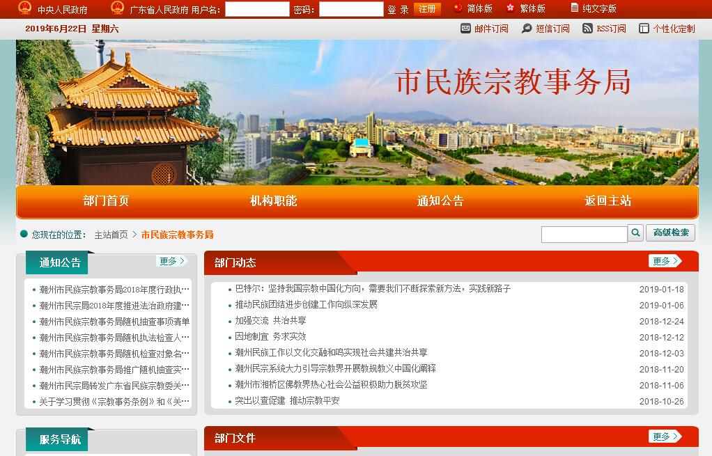 潮州市民族宗教事務局主要職責:(一)貫徹執(zhí)行國家和省有關民族、宗教工作的方針政策和法律法規(guī),起草我市民族、宗教工作的實施辦法,并組織實施和督促檢查。(二)負責協(xié)調推動有關部門履行民族、宗教工作相關職責,促進民族政策在經(jīng)濟發(fā)展和社會事業(yè)有關領域的實施,防范利用宗教進行非法、違法活動,抵御境外利用宗教進行滲透活動。(三)研究提出協(xié)調民族、宗教關系的工作建議,協(xié)調處理民族、宗教關系中的重大事項,參與協(xié)調涉及民族、宗教因素的社會維穩(wěn)工作,保障少數(shù)民族和宗教界的合法權益,維護民族、宗教領域的和諧穩(wěn)定。(四)負責組織指導民族、宗教政策和法律法規(guī)的宣傳教育工作,組織協(xié)調涉及民族、宗教因素的重大活動,依法履行宗教事務管理職責,依法保護公民宗教信仰自由和正常的宗教活動。(五)指導宗教團體依法依章開展活動,支持宗教團體加強自身建設,幫助宗教團體辦好宗教院校,積極推動宗教團體開展愛國主義、社會主義、擁護祖國統(tǒng)一和民族團結教育,辦理宗教團體需要政府幫助解決和協(xié)調的有關事務。(六)依法管理民族、宗教方面的涉外事務,參與涉及民族宗教事務的對外宣傳工作,協(xié)調民族、宗教工作的對外交流與合作,指導宗教團體開展對外友好交往活動。(七)協(xié)助有關部門做好少數(shù)民族干部的培養(yǎng)、教育和使用工作,幫助宗教團體做好宗教人士的培養(yǎng)教育和政治安排工作。(八)承辦市委、市政府和上級主管部門交辦的其他事項。