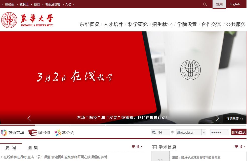 東華大學是教育部直屬、國家“211工程”、國家一流學科建設(shè)高校。經(jīng)過66年的建設(shè)和發(fā)展,學校已經(jīng)從建校之初的一所紡織單科院校發(fā)展成為以工為主,工、理、管、文等學科協(xié)調(diào)發(fā)展的有特色的全國重點大學。學校以習近平新時代中國特色社會主義思想為指導,堅定貫徹黨和國家的教育方針,以立德樹人為根本,依法自主開展人才培養(yǎng)、科學研究、社會服務(wù)和文化傳承創(chuàng)新,為國家、上海和行業(yè)的經(jīng)濟建設(shè)和社會發(fā)展提供人才和科技支撐。地理歷史:學校地處中國上海,現(xiàn)有松江校區(qū)、延安路校區(qū)和新華路校區(qū),占地面積近2000畝,校舍總建筑面積78萬余平方米。校園環(huán)境宜人,系“上海市花園單位”。學校創(chuàng)建于1951年,時名華東紡織工學院,是新中國第一所紡織高等學府。1960年,被國家教育部確定為全國重點大學,是中國首批具有博士、碩士、學士三級學位授予權(quán)的大學之一。1985年,學校更名為中國紡織大學。1995年,進入國家“211工程”重點建設(shè)行列,1999年,更名為東華大學。基本情況:學校現(xiàn)設(shè)有紡織學院、服裝與藝術(shù)設(shè)計學院、旭日工商管理學院、機械工程學院、信息科學與技術(shù)學院、計算機科學與技術(shù)學院、化學化工與生物工程學院、材料科學與工程學院、環(huán)境科學與工程學院、人文學院、理學院、外語學院、馬克思主義學院、上海國際時尚創(chuàng)意學院、國際文化交流學院、繼續(xù)教育學院和體育部。學校擁有6個博士后流動站、10個一級學科博士點、1個工程博士專業(yè)學位點、29個一級學科碩士點、11個專業(yè)學位碩士授權(quán)類別、16個工程碩士授權(quán)領(lǐng)域、55個本科專業(yè),學科涉及工學、理學等十個學科門類。共有1個一級學科國家重點學科,5個二級學科國家重點學科,1個國家重點(培育)學科,7個上海市一流學科,1個上海高校Ι類高峰學科,同時設(shè)有13個國家和省部級科研基地,2個國家“111”引智基地以及國家大學科技園。全校各類學生近3萬人,其中本科生14267人,研究生7330人,其中博士生1022人,成人教育學歷生2023人,各類留學生4788人,其中,學歷留學生1111人。全校教職工共2144人,專任教師1296人,其中專職院士、千人計劃、長江學者(含講座教授)、國家杰出青年基金獲得者等高級職稱教師近900名。教育教學:學校貫徹全國高校思想政治工作會議精神,遵循“以學生的全面發(fā)展與成才為中心”的辦學理念,秉承“崇德博學、礪志尚實”的校訓和“嚴謹、勤奮、求實、創(chuàng)新”的優(yōu)良校風,弘揚“積極向上、愛校榮校、崇尚學術(shù)、追求卓越、敬業(yè)奉獻”的東華精神,堅持立德樹人,把思想政治工作貫穿于教學全過程,培養(yǎng)基礎(chǔ)寬厚、實踐能力強、具有創(chuàng)新精神和社會責任感的高素質(zhì)人才。學校持續(xù)深化教育教學改革,不斷創(chuàng)新人才培養(yǎng)模式,以提升質(zhì)量為導向,構(gòu)建本科生“分層教學、分流培養(yǎng)、多元成才、人人成才”的培養(yǎng)體系。研究生教育實施“長學制培養(yǎng)、碩博連讀、申請-考核、公開招考”等多元選拔體系以及“本碩博一體化人才培養(yǎng)”、“質(zhì)量保證和監(jiān)督”體系。大力發(fā)展專業(yè)學位研究生教育,首批進入教育部“卓越工程師教育培養(yǎng)計劃”,獲評“全國工程碩士研究生教育創(chuàng)新院?!?,獲批全國示范性工程專業(yè)學位研究生聯(lián)合培養(yǎng)基地2個、工程碩士實習實踐優(yōu)秀成果獲得者4人,專業(yè)學位研究生教育改革入選上海教育綜合改革典型案例。入選“全國百篇優(yōu)秀博士學位論文”8篇,列全國高校第30位。建有3個國家級工程實踐教育中心,入選“萬人計劃”國家教學名師、教學團隊、特色專業(yè)等國家級項目50余項,獲省部級教學成果130余項。東華學子在國際大學生程序設(shè)計競賽、IF和紅點國際設(shè)計大賽、世界可穿著藝術(shù)設(shè)計大賽、挑戰(zhàn)杯中國大學生創(chuàng)業(yè)計劃競賽、世界大學生運動會等國內(nèi)外重大比賽中屢獲佳績。學校全面推進雙創(chuàng)教育,首批入選教育部“國家大學生創(chuàng)新創(chuàng)業(yè)活動計劃”,成立上海市大學生文化創(chuàng)意創(chuàng)業(yè)基地、上海市實踐育人創(chuàng)新基地、上海首個高校眾創(chuàng)空間、上海市大學生創(chuàng)客聯(lián)盟和“尚創(chuàng)匯”東華大學大學生創(chuàng)新創(chuàng)業(yè)孵化基地,并入選全國高校實踐育人創(chuàng)新創(chuàng)業(yè)基地、上海市創(chuàng)新創(chuàng)業(yè)教育示范校、全國深化創(chuàng)新創(chuàng)業(yè)教育改革特色典型經(jīng)驗高校?!吧袆?chuàng)匯”眾創(chuàng)空間入選科技部2017年國家級眾創(chuàng)空間。獲“全國高等學校畢業(yè)生就業(yè)工作先進集體”、“全國畢業(yè)生就業(yè)典型經(jīng)驗高?!?、“上海市促進就業(yè)先進集體”等榮譽稱號。易班工作站入選全國高校十佳易班工作站,基于易班的“網(wǎng)絡(luò)教學資源庫建設(shè)”工程獲“第六屆全國高校百佳網(wǎng)站”和“最佳學研促進獎”。學科科研:2017年,我校入選一流學科建設(shè)高校,建設(shè)學科為紡織科學與工程。近年
