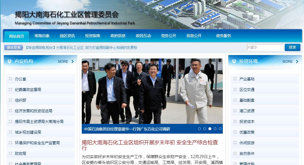 揭陽大南海石化工業(yè)區(qū)于2007年7月由廣東省政府批準(zhǔn)設(shè)立,是國(guó)家和省十二五經(jīng)濟(jì)發(fā)展規(guī)劃和產(chǎn)業(yè)布局的重要節(jié)點(diǎn),也是廣東省加快粵東西北經(jīng)濟(jì)發(fā)展的重要戰(zhàn)略區(qū)域和重大引擎。工業(yè)區(qū)規(guī)劃總面積133平方公里,區(qū)位優(yōu)勢(shì)突出,位于珠三角和海峽西岸兩大經(jīng)濟(jì)圈之間的黃金切點(diǎn),北依大南山,南瀕南海,距離國(guó)際航線不到5海里,擁有黃金岸線長(zhǎng)9.7公里,具備建設(shè)30萬噸級(jí)碼頭天然深水良港、超大型工業(yè)裝備基地和承載巨大經(jīng)濟(jì)實(shí)體的能力與優(yōu)越條件。作為廣東省四大石化產(chǎn)業(yè)基地之一,工業(yè)區(qū)的建設(shè)得到中央、省、市各級(jí)領(lǐng)導(dǎo)的關(guān)心和大力支持。省、市領(lǐng)導(dǎo)多次親臨工業(yè)區(qū)視察,并對(duì)本園區(qū)的建設(shè)和發(fā)展給予充分的肯定和支持。工業(yè)區(qū)將積極彰顯區(qū)位及資源優(yōu)勢(shì),以科學(xué)發(fā)展觀為指導(dǎo),以“高起點(diǎn)規(guī)劃、高水平建設(shè)、高效能管理”為原則,圍繞打造以基礎(chǔ)配套為支撐、以綠色生態(tài)為依托、以科技研發(fā)為保障、以裝備制造為補(bǔ)充、以海洋文化為底蘊(yùn)的“世界級(jí)煉油基地”、“國(guó)家級(jí)新型石化產(chǎn)業(yè)示范區(qū)和臨港生態(tài)石化新城”的戰(zhàn)略目標(biāo),重點(diǎn)發(fā)展煉油、精細(xì)化工、機(jī)械裝備、生物醫(yī)藥、新型材料、高端服務(wù)業(yè)等六大支柱產(chǎn)業(yè),全面構(gòu)建煉油化工、行政生活服務(wù)和生態(tài)旅游三大板塊,努力建設(shè)成為粵東地區(qū)的經(jīng)濟(jì)新增長(zhǎng)極。
