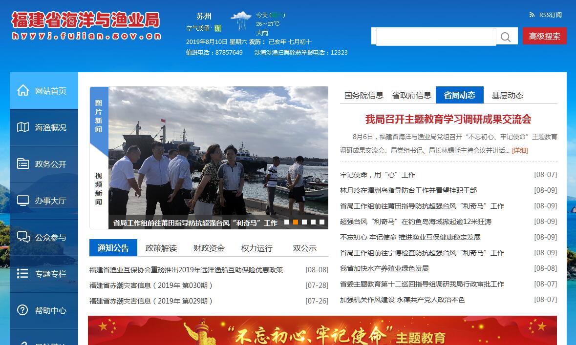 福建省海洋與漁業(yè)局主要職責(zé):(一)貫徹執(zhí)行海洋經(jīng)濟(jì)與漁業(yè)發(fā)展的有關(guān)法律法規(guī)和政策,起草我省海洋經(jīng)濟(jì)與漁業(yè)發(fā)展有關(guān)地方性法規(guī)、政府規(guī)章草案,擬訂海洋經(jīng)濟(jì)和漁業(yè)發(fā)展有關(guān)政策、規(guī)劃并組織實(shí)施。(二)協(xié)調(diào)推進(jìn)我省海洋經(jīng)濟(jì)發(fā)展,開展海洋經(jīng)濟(jì)試點(diǎn)示范工作。會同有關(guān)部門提出優(yōu)化海洋產(chǎn)業(yè)結(jié)構(gòu)、調(diào)整產(chǎn)業(yè)布局的建議,指導(dǎo)推動漁業(yè)產(chǎn)業(yè)結(jié)構(gòu)、產(chǎn)業(yè)布局調(diào)整。協(xié)調(diào)海洋戰(zhàn)略性新興產(chǎn)業(yè)、休閑漁業(yè)等相關(guān)產(chǎn)的發(fā)展。(三)推動海洋經(jīng)濟(jì)科技創(chuàng)新,負(fù)責(zé)海洋經(jīng)濟(jì)運(yùn)行監(jiān)測、評估及信息發(fā)布等。(四)負(fù)責(zé)編制海洋經(jīng)濟(jì)和漁業(yè)漁政有關(guān)投資項(xiàng)目建設(shè)規(guī)劃,提出相關(guān)投資項(xiàng)目需求和財(cái)政項(xiàng)目安排建議,并組織指導(dǎo)實(shí)施。(五)組織實(shí)施海洋與漁業(yè)有關(guān)標(biāo)準(zhǔn)、技術(shù)規(guī)范和節(jié)能減排,指導(dǎo)漁業(yè)標(biāo)準(zhǔn)化生產(chǎn)。按分工提出海洋與漁業(yè)有關(guān)科研、技術(shù)推廣項(xiàng)目建議,承擔(dān)有關(guān)重大科研、技術(shù)推廣項(xiàng)目的遴選及組織實(shí)施工作。指導(dǎo)水產(chǎn)技術(shù)推廣體系建設(shè)。(六)依法監(jiān)督管理水產(chǎn)品質(zhì)量安全、水產(chǎn)養(yǎng)殖用獸藥及其它投入品的使用。指導(dǎo)水產(chǎn)品加工流通。承擔(dān)漁業(yè)統(tǒng)計(jì)監(jiān)測工作。(七)組織實(shí)施水域?yàn)┩筐B(yǎng)殖證制度,指導(dǎo)水產(chǎn)健康養(yǎng)殖。組織水產(chǎn)養(yǎng)殖污染防控工作。負(fù)責(zé)水產(chǎn)苗種管理。承擔(dān)水生動物防疫檢疫相關(guān)工作,組織水生動植物病害防控工作。(八)組織實(shí)施漁業(yè)捕撈許可制度。負(fù)責(zé)漁船、漁機(jī)、漁具監(jiān)督管理,組織漁船裝備更新改造。監(jiān)督管理遠(yuǎn)洋漁業(yè),推動遠(yuǎn)洋漁業(yè)發(fā)展。(九)負(fù)責(zé)漁業(yè)資源、水產(chǎn)種質(zhì)資源和水生野生動植物的保護(hù)管理和合理開發(fā)利用。組織實(shí)施休漁禁漁制度,指導(dǎo)水生生物資源增殖。組織開展水生野生動物資源調(diào)查和評估,研究提出地方重點(diǎn)保護(hù)的水生野生動植物名錄調(diào)整意見。負(fù)責(zé)水產(chǎn)種質(zhì)資源保護(hù)區(qū)和水生野生動物棲息地相關(guān)工作。按規(guī)定承擔(dān)生態(tài)環(huán)境保護(hù)相關(guān)工作。(十)承擔(dān)我省漁港監(jiān)督管理職責(zé),負(fù)責(zé)漁業(yè)航標(biāo)、漁業(yè)船員、漁業(yè)通訊管理,組織漁船漁港管理信息系統(tǒng)建設(shè)。承擔(dān)維護(hù)漁業(yè)生產(chǎn)秩序,指導(dǎo)監(jiān)督漁業(yè)執(zhí)法工作等職責(zé)。指導(dǎo)漁業(yè)行政執(zhí)法隊(duì)伍建設(shè)。(十一)指導(dǎo)漁業(yè)安全生產(chǎn)。負(fù)責(zé)漁港、漁業(yè)船舶(含休閑漁業(yè)船舶)安全監(jiān)督管理。承擔(dān)職責(zé)范圍內(nèi)的漁業(yè)應(yīng)急處置和漁業(yè)安全生產(chǎn)事故調(diào)查處理工作。參與漁船涉外涉臺事件處理,承擔(dān)漁事糾紛處理工作。(十二)負(fù)責(zé)海洋、漁業(yè)防災(zāi)減災(zāi)工作。負(fù)責(zé)海洋觀測預(yù)報(bào)和海洋災(zāi)害預(yù)警報(bào)。組織海洋災(zāi)害影響評估和災(zāi)后生產(chǎn)恢復(fù)工作。(十三)按分工會同有關(guān)部門組織開展海洋、漁業(yè)對外以及對臺港澳有關(guān)經(jīng)濟(jì)、技術(shù)交流與合作。(十四)負(fù)責(zé)加強(qiáng)本系統(tǒng)、本領(lǐng)域人才隊(duì)伍建設(shè)。(十五)完成省委和省政府交辦的其他任務(wù)。