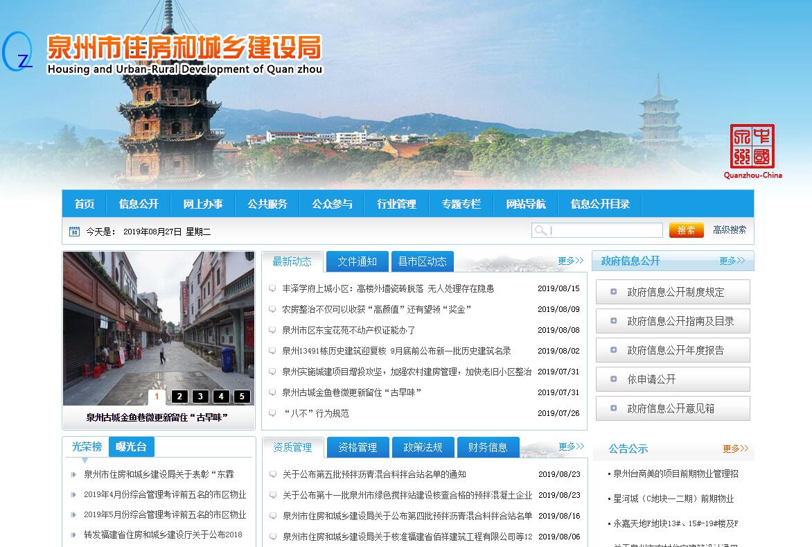 您當(dāng)前的位置:網(wǎng)站首頁(yè) > 目錄主分類 > 社會(huì)教育 > 政府組織 > 地方政府網(wǎng)站 > 泉州市住房和城鄉(xiāng)建設(shè)局