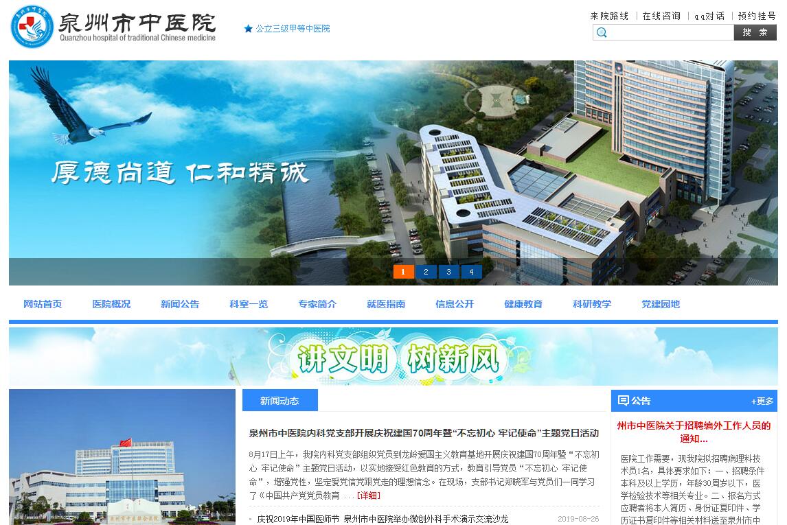 泉州市中醫(yī)院成立于1983年8月15日,由當(dāng)時(shí)泉州市人民醫(yī)院中醫(yī)藥部分和泉州市中醫(yī)門診部合并,異地組建而成,原址位于市區(qū)溫陵南路。2010年12月在泉州市委、市政府的高度重視下,整合市中醫(yī)院等專科中醫(yī)資源建設(shè)新院。新院區(qū)占地173畝,首期建設(shè)1000張床位。總建筑面積11.2萬平方米。2015年8月,醫(yī)院整體搬遷至鯉城區(qū)金龍街道高山社區(qū)筍江路新院區(qū)并全部開診,舊院區(qū)停止服務(wù)。建院30多年來,在各級(jí)政府的領(lǐng)導(dǎo)下,通過全院職工的共同努力,已成為泉州地區(qū)中醫(yī)醫(yī)療、教學(xué)、科研、預(yù)防、保健、康復(fù)和急救中心,是三級(jí)甲等中醫(yī)院和泉臺(tái)中醫(yī)交流中心、福建中醫(yī)藥大學(xué)附屬醫(yī)院、福建省中醫(yī)住院醫(yī)師和全科醫(yī)生規(guī)范化培訓(xùn)(臨床培養(yǎng))基地、省醫(yī)學(xué)教育進(jìn)修基地、省新藥臨床驗(yàn)證基地、省道路交通事故傷員救治定點(diǎn)醫(yī)院、泉州市“120”急救站、省腫瘤醫(yī)院和省肝病協(xié)會(huì)協(xié)作醫(yī)院。經(jīng)省委省政府批準(zhǔn),醫(yī)院與中國工程院院士、著名針灸學(xué)專家石學(xué)敏簽署協(xié)議,設(shè)立院士專家工作站。2015年我院完成門急診量420269人次,收治住院病人數(shù)為17274人次,住院總床日數(shù)為196655床日。針灸科是國家臨床重點(diǎn)專科;中西醫(yī)結(jié)合腦血管病??坪歪樉目茷閲抑嗅t(yī)藥管理局“十二五”重點(diǎn)??平ㄔO(shè)項(xiàng)目;省中醫(yī)重點(diǎn)??瓢ㄡ樉摹⒅嗅t(yī)婦科、中醫(yī)腎病、中西醫(yī)結(jié)合腦血管病???、中醫(yī)肛腸???、中醫(yī)骨傷???;市級(jí)中醫(yī)重點(diǎn)專科包括中醫(yī)腎病???、蛇傷科、肛腸科、骨關(guān)節(jié)病和腰腿痛專科、康復(fù)科、脾胃肝膽科。蛇傷科、脾胃肝膽科、心腦血管內(nèi)科、腫瘤科、骨傷科、針灸康復(fù)科、婦科、肛腸科等??篇?dú)具特色,屢獲好評(píng)。醫(yī)院加強(qiáng)培育一些有基礎(chǔ)、有優(yōu)勢、有特色的專業(yè),以促進(jìn)新重點(diǎn)??频男纬?。經(jīng)過幾年發(fā)展,醫(yī)院衛(wèi)技人員逐步形成較完整的梯隊(duì)結(jié)構(gòu)和專業(yè)特點(diǎn)。全院開放床位800張,職工820人,其中衛(wèi)生技術(shù)人員756人,擁有正高職稱43人,副高78人,中級(jí)職稱203人。國家級(jí)名老中醫(yī)5人,享受國家津貼1人,全國優(yōu)秀中醫(yī)臨床人才1人,省級(jí)優(yōu)秀中醫(yī)臨床人才2人??剖议T類齊全。醫(yī)療儀器齊全,設(shè)備先進(jìn),配套先進(jìn)手術(shù)室系統(tǒng)和ICU系統(tǒng)。擁有核磁共振、螺旋CT、彩超、數(shù)字化醫(yī)用X線攝像系統(tǒng)、C臂X光機(jī)、全自動(dòng)樣品處理系統(tǒng)(實(shí)驗(yàn)室自動(dòng)化系統(tǒng))、電子胃鏡、腸鏡、關(guān)節(jié)鏡、腹腔鏡、宮腔鏡、磁免檢測等一批先進(jìn)醫(yī)療設(shè)備,為臨床診斷治療提供可靠支持。隨著改革開放不斷深入,醫(yī)院已形成醫(yī)療特色突出、臨床療效顯著、醫(yī)院功能健全、管理水平較高、醫(yī)德醫(yī)風(fēng)良好的社會(huì)主義醫(yī)院,醫(yī)院以“一流醫(yī)術(shù)、一流服務(wù)”為宗旨,竭誠為海內(nèi)外同胞服務(wù)。