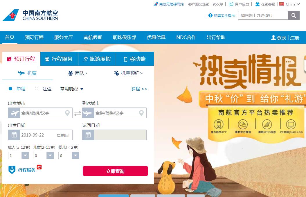 | 網(wǎng)站名稱: | 南方航空 | ||
