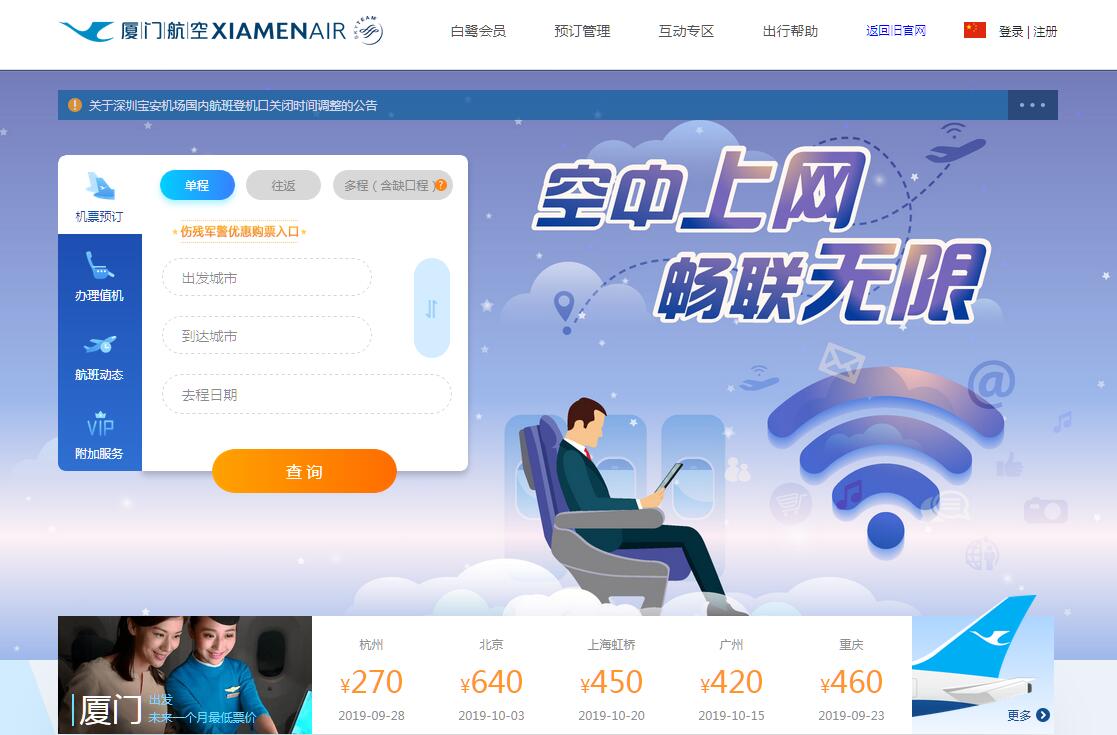 廈門航空成立于1984年,總部位于中國東南沿海的福建省廈門市,是中國首家按現(xiàn)代企業(yè)制度運(yùn)行的航空公司。經(jīng)過34年的持續(xù)發(fā)展,廈航現(xiàn)已成為中國民航最具特色的航空公司,被習(xí)近平總書記譽(yù)為“中國航空業(yè)發(fā)展的縮影”。截止2018年初,廈航機(jī)隊(duì)規(guī)模達(dá)到163架飛機(jī),是世界上最年輕的機(jī)隊(duì)之一,開通國內(nèi)外航線近400條,航線網(wǎng)絡(luò)覆蓋全中國、輻射東南亞和東北亞,通達(dá)歐洲、北美洲、大洋洲,借助天合聯(lián)盟優(yōu)勢航班延伸至全球177個國家1074個目的地。廈航是中國民航業(yè)保持盈利最長的航空公司,實(shí)現(xiàn)中國唯一的連續(xù)31年盈利。在全球航空公司金融評級中,名列中國航空公司之首。廈航現(xiàn)擁有總資產(chǎn)400億元,凈資產(chǎn)162億元,資產(chǎn)負(fù)債率為59%,自2009年以來,累計(jì)實(shí)現(xiàn)營業(yè)收入1200億元左右,實(shí)現(xiàn)利潤127億元。在國際航協(xié)240多家成員航空公司中,廈航的利潤總額名列前20位,收入利潤率更是進(jìn)入前10位。多年來,廈航在保證航空安全、提升服務(wù)品質(zhì)方面做出了不懈的努力,目前已累計(jì)安全飛行超過400萬小時,連續(xù)多年被中國旅客評為航空服務(wù)“最佳航空公司”。2016年3月,廈航榮獲第二屆中國質(zhì)量獎,成為中國服務(wù)業(yè)首家獲此殊榮的企業(yè),同時也是中國民航唯一獲獎的航空公司。未來,廈航將繼續(xù)致力于“感動顧客,成就員工,回報社會”的使命,以愛拼會贏鑄就創(chuàng)新精進(jìn)的廈航精神,以中華氣質(zhì)詮釋超越期待的旅行體驗(yàn),以國際視野打造通達(dá)全球的樞紐網(wǎng)絡(luò),建設(shè)“安全一流的平安廈航、品牌一流的百年廈航、管理一流的創(chuàng)新廈航、績效一流的卓越廈航、生態(tài)一流的幸福廈航”的世界一流航空公司。