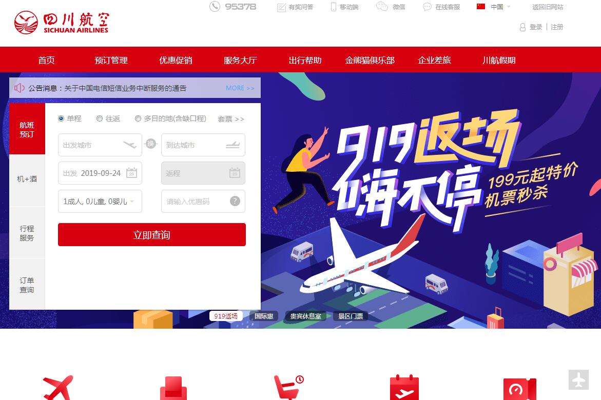 網(wǎng)站域名: www.sichuanair.com