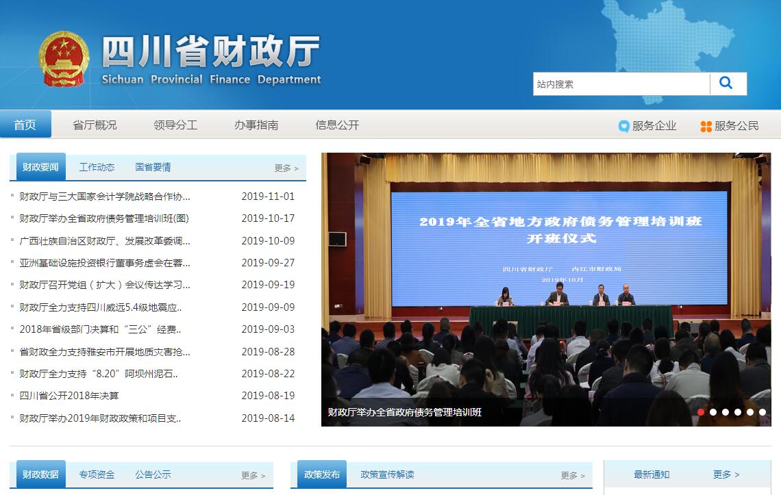 四川省財政廳主要職責:(一)擬訂全省財稅(含財政、預算、稅收、非稅收入、財務、會計、國有資產等,下同)發(fā)展戰(zhàn)略、規(guī)劃、政策和改革方案并組織實施,分析預測宏觀經濟形勢,參與制定各項宏觀經濟政策,提出運用財稅政策實施宏觀調控和綜合平衡社會財力的建議,擬訂省與市(州)和縣(市、區(qū))、政府與企業(yè)的分配政策,完善鼓勵公益事業(yè)發(fā)展的財稅政策。(二)貫徹執(zhí)行國家財稅方面的法律、法規(guī)和方針、政策,擬訂全省性財稅立法規(guī)劃,負責組織起草地方性財稅法規(guī)草案、實施辦法和規(guī)章制度并組織實施。按照管理權限管理全省稅政事項,承辦國務院關稅稅則委員會辦公室要求省一級承擔的工作。(三)承擔各項財政收支管理的責任。負責編制年度省級預決算草案并組織執(zhí)行。受省政府委托,向省人民代表大會報告全省和省級預算及其執(zhí)行情況,向省人大常委會報告決算。組織制定經費開支標準、定額,負責審核批復部門(單位)的年度預決算。完善轉移支付制度。(四)負責政府非稅收入管理。負責政府性基金管理,按規(guī)定管理行政事業(yè)性收費。管理財政票據。制定并組織實施彩票管理政策和有關辦法,管理彩票市場,按規(guī)定管理彩票資金。(五)組織制定全省國庫管理制度、國庫集中收付制度,指導和監(jiān)督國庫業(yè)務,按規(guī)定開展國庫現金管理工作。負責制定政府采購制度,監(jiān)督管理全省政府采購工作。(六)負責制定全省行政事業(yè)單位國有資產管理規(guī)章制度及省級機關事業(yè)單位國有資產收益管理辦法并對執(zhí)行情況進行監(jiān)督檢查,負責省級機關國有資產經營收益財政專戶管理工作。制定需要全省統(tǒng)一規(guī)定的開支標準和支出政策,負責財政預算內行政機構、事業(yè)單位和社會團體的非貿易外匯和財政預算內的國際收支管理。(七)負責審核和匯總編制全省國有資本經營預決算草案,制訂國有資本經營預算的制度和辦法,收取省本級企業(yè)國有資本收益,組織實施企業(yè)財務制度,按規(guī)定管理金融類企業(yè)國有資產,參與擬訂企業(yè)國有資產管理相關制度,按規(guī)定管理資產評估工作。(八)負責辦理和監(jiān)督財政性經濟發(fā)展支出、政府性投資項目的財政撥款,負責投資評審管理工作,參與擬訂政府性建設投資的有關政策,制定基本建設財務制度,負責有關政策性補貼和專項儲備資金財政管理工作。負責全省農業(yè)綜合開發(fā)管理工作。(九)會同有關部門管理全省社會保障和就業(yè)及醫(yī)療衛(wèi)生支出,會同有關部門擬訂社會保障資金(基金)的財務管理制度,編制省級社會保障預決算草案。(十)組織執(zhí)行政府債務管理制度和政策,制定具體管理辦法,負責管理政府債務,防范財政風險。參與研究利用外資的有關政策,管理外國政府和國際金融機構貸(贈)款項目的有關業(yè)務,參與財稅領域的國際交流與合作。(十一)負責管理全省的會計工作,監(jiān)督和規(guī)范會計行為,組織實施國家統(tǒng)一的會計制度,指導和監(jiān)督注冊會計師和會計師事務所的業(yè)務,指導和管理社會審計。(十二)負責財政資金績效評價。監(jiān)督檢查財稅法規(guī)、政策的執(zhí)行情況,反映財政收支管理中的重大問題。依法查處違反財經法紀的行為。(十三)負責財政宣傳和財政信息管理系統(tǒng)工作,制訂財政科學研究和教育規(guī)劃,組織和管理全省財政業(yè)務培訓。(十四)承擔省政府公布的有關行政審批事項。(十五)承辦省政府交辦的其他事項。