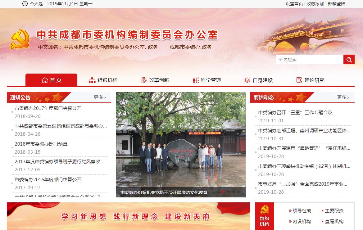 中共成都市委機構(gòu)編制委員會主要職責(zé):(一)貫徹執(zhí)行中央、省關(guān)于行政管理體制改革、機構(gòu)改革、事業(yè)單位改革以及機構(gòu)編制管理的方針政策和法律、法規(guī)、規(guī)章,擬訂相關(guān)政策并監(jiān)督實施。(二)研究擬訂全市行政管理體制改革和機構(gòu)改革總體方案;負(fù)責(zé)市級部門“三定”規(guī)定和區(qū)(市)縣機構(gòu)改革方案審核工作;指導(dǎo)、協(xié)調(diào)區(qū)(市)縣、鄉(xiāng)鎮(zhèn)(街道)行政管理體制改革和機構(gòu)改革工作;負(fù)責(zé)機構(gòu)改革和職能運行效果評估工作;負(fù)責(zé)清理和調(diào)整市政府工作部門行政審批事項,推進(jìn)行政審批制度改革;參與行政區(qū)劃調(diào)整工作。(三)擬訂全市行政管理體制改革中長期規(guī)劃、年度工作計劃并組織實施;負(fù)責(zé)全市統(tǒng)籌城鄉(xiāng)行政管理體制機制研究,收集、綜合分析全國行政管理體制改革信息,并提出改革對策和建議。(四)貫徹執(zhí)行有關(guān)行政審批制度改革工作的方針政策和法律、法規(guī)、規(guī)章,牽頭組織實施全市行政審批制度改革工作,負(fù)責(zé)擬訂相關(guān)改革的規(guī)劃和年度工作方案,研究提出全市行政審批制度改革的政策建議; 指導(dǎo)全市行政審批制度改革工作,檢查、評估、督促行政審批制度改革政策措施落實; 向市政府提出市級各部門需要取消、保留、下放行政審批項目的意見; 向市政府提出市級各部門需要取消、保留、下放行政審批項目的意見。(五)負(fù)責(zé)市委、市政府各部門,市人大、市政協(xié)機關(guān),市法院、市檢察院機關(guān),各民主黨派市委機關(guān),市人民團(tuán)體機關(guān)的機構(gòu)編制管理;負(fù)責(zé)市政府派出機構(gòu)、駐外辦事機構(gòu)的機構(gòu)編制管理;牽頭協(xié)調(diào)市級各部門之間以及市級各部門與區(qū)(市)縣之間的職責(zé)分工。(六)擬訂全市行政編制、政法專項編制總額分配方案,審核、報批跨層級調(diào)整行政編制事項;負(fù)責(zé)全市行政、事業(yè)編制總量控制和動態(tài)管理;負(fù)責(zé)市級機關(guān)和事業(yè)單位補充人員的核批工作。(七)審核區(qū)(市)縣副局級及以上機構(gòu)和按照副局級及以上規(guī)格管理機構(gòu)的設(shè)置、調(diào)整;審核區(qū)(市)縣副局級及以上領(lǐng)導(dǎo)職數(shù)的配備;指導(dǎo)、監(jiān)督區(qū)(市)縣機構(gòu)編制管理工作。(八)擬訂全市事業(yè)單位改革方案、實施意見、機構(gòu)編制配備標(biāo)準(zhǔn)及相關(guān)配套政策;負(fù)責(zé)市屬事業(yè)單位機構(gòu)編制管理工作;負(fù)責(zé)參照公務(wù)員法管理事業(yè)單位職責(zé)的審核工作;審核各區(qū)(市)縣事業(yè)單位改革總體方案,指導(dǎo)、監(jiān)督區(qū)(市)縣事業(yè)單位改革和機構(gòu)編制管理工作。(九)監(jiān)督檢查全市行政管理體制改革、機構(gòu)改革、事業(yè)單位改革以及機構(gòu)編制管理有關(guān)規(guī)定的執(zhí)行情況;建立機構(gòu)編制工作考核評估制度;會同有關(guān)部門查處機構(gòu)編制違法違紀(jì)行為。(十)負(fù)責(zé)全市事業(yè)單位登記管理、全市黨政群機關(guān)和事業(yè)單位政務(wù)與公益專用中文域名注冊管理工作。(十一)承辦市委、市政府和市委編委交辦的其他工作。