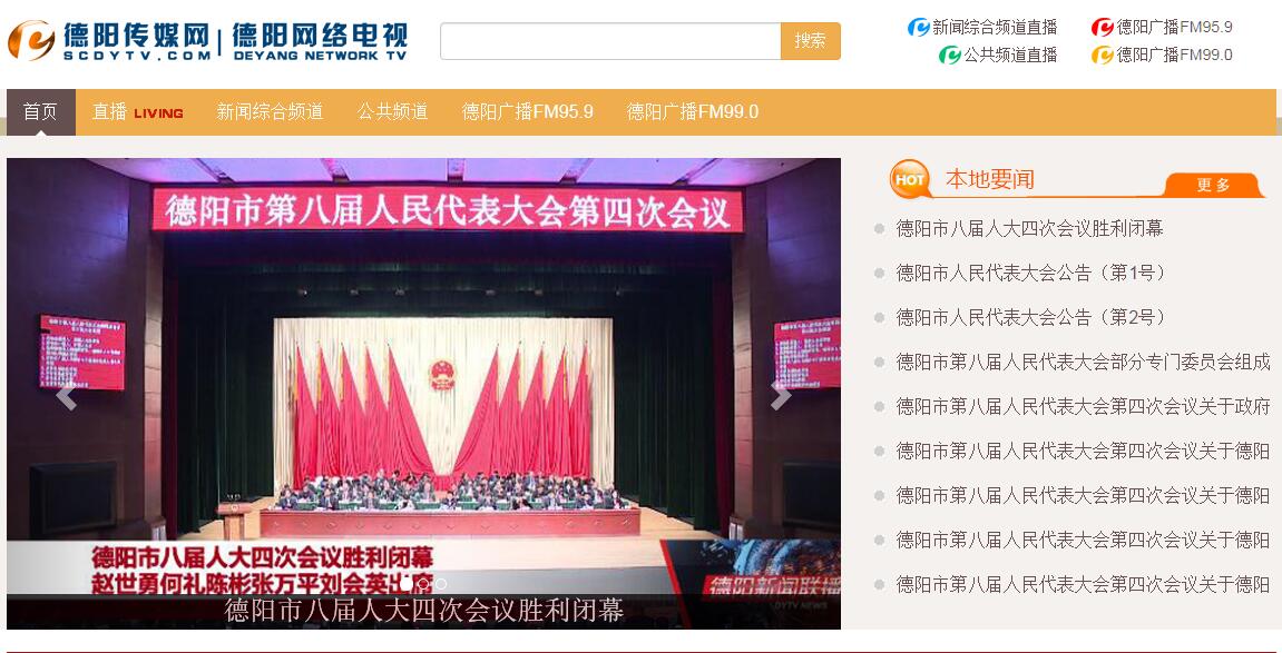 | 網(wǎng)站簡介: 德陽傳媒網(wǎng)為你提供德陽本地最豐富的新聞資源。是德陽廣播電視臺(tái)唯一官方網(wǎng)站,擁有德陽廣播電視臺(tái)全部節(jié)目的音視頻直播,轉(zhuǎn)播及在線重播版權(quán),是結(jié)合電視社區(qū),新聞,娛樂,等眾多豐富內(nèi)容的網(wǎng)絡(luò)互動(dòng)平臺(tái),德陽門戶網(wǎng)站,視頻第一播放平臺(tái)。 |