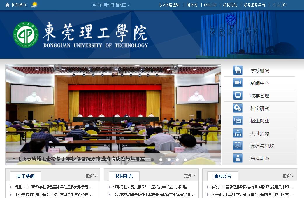 東莞理工學院是廣東東莞的第一所普通本科院校,省市共建,以市為主,諾貝爾物理學獎獲得者楊振寧博士任名譽校長。學校所在地東莞,是中國近代歷史開篇地、改革開放前沿地,經濟實力雄厚,擁有“全國文明城市” “國際花園城市” “中國最具經濟活力城市” “全國籃球城市”等多個稱號。學校于1990年籌辦,1992年4月經原國家教委批準成立,2002年3月經教育部批準變更為本科全日制普通高等院校,2006年5月獲批為學士學位授予單位,2008年5月提前參加教育部本科教學工作水平評估并以良好成績通過,2010年6月與清華大學等61所高校一起被批準為教育部第一批“卓越工程師教育培養(yǎng)計劃”實施高校,2010年8月獲批為廣東省立項建設的新增碩士學位授予單位,2012年獲批為“廣東省國際科技合作基地”,2015年9月被確定為廣東省重點支持的高水平理工科大學建設單位。學校經省民政廳批準成立了教育發(fā)展基金會,籌集教育發(fā)展資金4.6億多,設立了“楊振寧獎學金”等。現有松山湖、莞城兩個校區(qū),共占地2210畝,其中松山湖校區(qū)占地1870畝,坐落在科技與山水共一色的松山湖國家高新技術產業(yè)開發(fā)區(qū),是一座花園式、現代化的校園,辦學設施完備,教學實驗設備充足,公共服務體系建設完善;莞城校區(qū)面積340多畝,交通便利,湖光山色,綠樹成蔭,環(huán)境優(yōu)美;兩校區(qū)體育場地面積約45000多平方米,是國家田徑隊掛牌基地,2006年成功協辦了廣東省第七屆大學生運動會;圖書館總建筑面積45020平方米,累計藏書193萬冊,有39個數據庫、170萬冊電子圖書等數字資源;兩校區(qū)建成萬兆帶寬主干、部分千兆帶寬到桌面的校園網,建立了3.8萬個信息點。建有16個實驗教學中心,其中“電工電子實驗教學中心” “計算機科學與技術實驗教學中心” “機械設計制造及其自動化專業(yè)工程實踐教育中心” “化學實驗教學示范中心” “現代傳媒實驗教學示范中心” “經管信息化與仿真實驗教學中心” “土木工程實驗教學中心” “移動通信實驗教學示范中心” “智能制造創(chuàng)新創(chuàng)業(yè)虛擬仿真實驗教學示范中心”等9個是省級實驗教學示范中心。建立了以工學為重點,管理學、文學、理學、經濟學、法學、教育學、藝術學等多學科協調發(fā)展的學科專業(yè)體系。設有15個學院、48個本科專業(yè)。機械設計制造及其自動化、軟件工程、電子信息工程、應用化學、環(huán)境工程、通信工程、計算機科學與技術、電氣工程及其自動化、土木工程等9個工科本科專業(yè)在廣東省第一批本科錄取批次招生,部分專業(yè)在江西、海南、甘肅、貴州、河南、河北、四川、山東、重慶等?。ㄖ陛犑械谝慌究普猩?,同時還面向22個?。ㄗ灾螀^(qū)、直轄市)招生?,F有普通全日制學生20429人,成人教育學生10743人,迄今為地方培養(yǎng)各類人才約11萬人。學校舉辦了本科獨立學院——東莞理工學院城市學院,現有普通全日制學生20220人。大力實施高水平師資隊伍建設工程,重視教師素質能力提升,以超常規(guī)措施,面向全球引進一批活躍在國際學術前沿與產業(yè)一線、把握智能制造領域關鍵技術的“杰出人才” “學科領軍、骨干人才” “產業(yè)精英人才”以及創(chuàng)新創(chuàng)業(yè)團隊?,F有教職工1418人,其中正高職稱人員180人、副高職稱人員335人,博士527人,享受國務院政府特殊津貼專家11人。2015年9月高水平理工科建設以來,學校共引進海內外高層次人才462人,包括徐建中、陳和生、周炳琨、王立軍、盧秉恒、楊志峰等雙聘、特聘院士6人,柔性引進中國工程院院士1人,外國院士1人,教育部“長江學者”特聘教授10人,中組部“千人計劃”學者8人,國家杰出青年基金獲得者10人,國家教學名師1人,國家百千萬人才工程1人,青年“千人計劃”學者1人 等;現有 “千百十人才培養(yǎng)工程”國家級培養(yǎng)對象1人、省級培養(yǎng)對象11人;實現東莞市“青年千人計劃”和學?!皣野偾f人才工程”“珠江人才計劃”“珠江學者”零的突破;大力加強博士后創(chuàng)新實踐基地建設,現已招收博士后21人。始終堅持以教學工作為中心,以教學質量為生命線,不斷深化教育教學改革,堅持校企合作、科教融合、實踐育人、創(chuàng)新育人,著力培養(yǎng)具有創(chuàng)新精神和實踐能力的高素質應用型人才。建立了421個穩(wěn)定的校外實習基地和13個創(chuàng)業(yè)見習基地,聘請了53名創(chuàng)業(yè)導師;建立了華為網絡學院、中興通訊學院、粵臺產業(yè)科技學院、粵港機器人學院、智匯谷現代網商學院、先進制造學院(長安)、微軟IT學院、360網絡空間安全產業(yè)學院等9個特色產業(yè)學院;積極開展“創(chuàng)新人才培養(yǎng)計劃”項目建設,建立創(chuàng)新創(chuàng)業(yè)學院、創(chuàng)新創(chuàng)業(yè)服務中心,每年安排1000萬元支持學生創(chuàng)新創(chuàng)業(yè),孵化了一大批學生企業(yè)。歷年來,應屆畢業(yè)生就業(yè)率均在98%以上,75%左右留東莞發(fā)展創(chuàng)業(yè),畢業(yè)生以綜合素質高、專業(yè)基礎扎實、實踐能力強而受到用人單位的廣泛好評,“來東莞理工求學,留東莞發(fā)展創(chuàng)業(yè)”已深入人心。高度重視發(fā)展研究生教育,2005年起先后與華南理工大學、暨南大學、華中科技大學、廣東工業(yè)大學啟動了