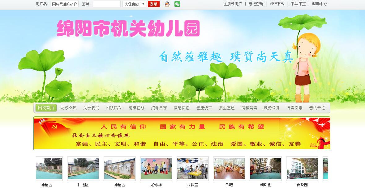 綿陽市機(jī)關(guān)幼兒園(原地專機(jī)關(guān)托兒所)始建于1950年11月,系綿陽市教體局直屬公辦幼兒園,是新中國(guó)成立后我市首批興辦的公辦園之一。六十多年的發(fā)展歷程,積淀了厚重的文化底蘊(yùn),形成了良好的品牌張力,享有崇高的社會(huì)聲譽(yù)和地位,成為綿陽幼教事業(yè)改革與發(fā)展的領(lǐng)頭羊,始終引領(lǐng)著全市幼教事業(yè)的同步發(fā)展。1997年,該園被評(píng)為四川省首批“省級(jí)示范性幼兒園”。近年來,在黨支部書記、園長(zhǎng)馮萍的帶領(lǐng)下,機(jī)關(guān)幼兒園始終堅(jiān)持以“高位求進(jìn)、精致保教、打造綠色精品幼兒園”的高端運(yùn)行理念,強(qiáng)化內(nèi)部管理,注重質(zhì)量提升,得到社會(huì)各界的廣泛認(rèn)同;始終堅(jiān)持走內(nèi)涵發(fā)展、特色發(fā)展之路,以科學(xué)保教和規(guī)范管理傲立潮頭,形成了“鮮活靈動(dòng)、生命之綠”的辦園特色,成為了綿陽幼教一張響亮的名片。先后被評(píng)選為“全國(guó)未成年人思想道德建設(shè)先進(jìn)集體”、“全國(guó)教育科研先進(jìn)集體”、“全國(guó)優(yōu)秀幼兒園”、“全國(guó)幼兒教學(xué)先進(jìn)單位”、“全國(guó)巾幗示范崗”、“四川省三八紅旗先進(jìn)單位”、“四川省綠色學(xué)?!?、“四川省幼兒體育基地”、“四川省特色體操幼兒園”、“四川省校本研修先進(jìn)學(xué)?!薄ⅰ八拇ㄊ∈称沸l(wèi)生A級(jí)信譽(yù)單位”、“綿陽市十大名?!钡葮s譽(yù)稱號(hào)。近年來,該園確定了“文化建設(shè)、特色打造”的發(fā)展之路,以科研為推動(dòng)力,著力提升保教質(zhì)量,打造優(yōu)秀教師團(tuán)隊(duì),鑄就了“示范”與“旗幟”的強(qiáng)勢(shì)地位。馮萍園長(zhǎng)被評(píng)為“四川省特級(jí)教師”、“四川省優(yōu)秀教師”、“省級(jí)教學(xué)名師”、“綿陽市十佳名校長(zhǎng)”;該園課題先后獲全國(guó)十一五教育科研優(yōu)秀成果二等獎(jiǎng)和優(yōu)秀獎(jiǎng);教師3人獲全國(guó)“教育科研先進(jìn)工作者”稱號(hào),20余人獲市級(jí)優(yōu)秀教師等榮譽(yù)稱號(hào);6人被評(píng)為省級(jí)骨干教師、17人被評(píng)為市級(jí)骨干教師。近三年教師撰寫論文獲國(guó)家、省、市級(jí)獎(jiǎng)200余篇,各類幼教專業(yè)競(jìng)賽獲國(guó)家級(jí)、省、市級(jí)獎(jiǎng)50余次;公開教學(xué)獲省、市級(jí)證書10余次,曾被收入四川省《學(xué)前教育優(yōu)秀活動(dòng)案例集錦》并出版;幼兒美術(shù)作品獲國(guó)家級(jí)獎(jiǎng)1500余人次,參加幼兒體操、舞蹈、唱歌比賽獲國(guó)家、省、市級(jí)獎(jiǎng)……類別、數(shù)量之多,枚不勝舉。機(jī)關(guān)幼兒園以成熟完善的管理和求新求變的辦學(xué)思路,始終探尋教育真諦,提升辦園質(zhì)量,注重榜樣示范和輻射帶動(dòng),推進(jìn)全市幼教事業(yè)同步發(fā)展。該園積極承擔(dān)培訓(xùn)任務(wù),成功承辦2012年全市幼兒體操比賽、2013年全市園長(zhǎng)《3-6歲兒童學(xué)習(xí)與發(fā)展指南》培訓(xùn),多次承辦國(guó)培學(xué)員和全市幼兒骨干教師培訓(xùn);熱情接待加拿大、美國(guó)專家及全國(guó)同仁造訪,僅三年就達(dá)3000余人次;堅(jiān)持送教,對(duì)口支援澳門、若爾蓋縣、北川及綿陽市各區(qū)縣鄉(xiāng)鎮(zhèn)園、民辦園,真正起好了標(biāo)桿和示范引領(lǐng)作用。該園積極攜手高校及研究團(tuán)體,相繼成為中國(guó)—加拿大聯(lián)合心理發(fā)展研究中心實(shí)驗(yàn)基地園、IBM KidSmart兒童電腦中心、香港幼兒體智能游戲教學(xué)基地、中國(guó)舞蹈家協(xié)會(huì)定點(diǎn)教學(xué)單位、省陶行知幼教研究會(huì)會(huì)員單位、四川幼專教育實(shí)習(xí)及教研基地、綿陽師院人才培養(yǎng)實(shí)訓(xùn)基地等。