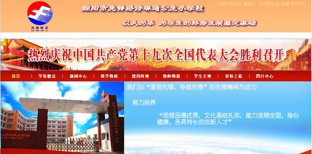 綿陽市先鋒路小學是一所建于上世紀60年代的城市小學,學校現(xiàn)有教職工90人,學生1700余人。我校是、全國少先隊紅旗大隊、全國優(yōu)秀家長學校、全國數(shù)學三算教學先進學校、四川省藝術教育先進集體、四川省青少年籃球?qū)W校、綿陽市示范小學、綿陽市甲級校風示范校、綿陽市現(xiàn)代教育技術示范校。過去,學校堅持 “以人為本,為學生的終身發(fā)展奠定基礎”的辦學理念,堅持“德育為首、全面育人、整體優(yōu)化、爭創(chuàng)一流“的辦學目標,以全面實施素質(zhì)教育為中心,以“愛我先鋒、爭做先鋒”的先鋒精神為動力,認真貫徹落實國家教育方針和素質(zhì)教育精神,培養(yǎng)出了像全國故事大王王思敏、國際數(shù)學競賽金獎高凱、銀獎李俊輝、銅獎羅蔓、向周正,法國國際青少年手風琴金獎楊宏宇、省乒乓青少年冠軍羅融融、全國數(shù)學競賽一等獎獲得者陽燦、文碩、羅一夫,全國推新人大賽十佳獎張康祥、錢妍潔等杰出的先鋒兒女,以及中央電視臺著名節(jié)目主持人李嘉明、走進國家理科實驗班的蔡雪、吳明璽、走進牛津大學的女孩沈揚等優(yōu)秀的先鋒學子。學校已經(jīng)初步形成了數(shù)學學科特色、民族器樂特色、青少年籃球排球傳統(tǒng)項目特色等辦學特色項目。2008.5.12汶川特大地震使學校教學設施設備嚴重損毀,在黨和政府及社會各界的關心下,由泰王國詩林通公主全資援建?,F(xiàn)在我校擁有全區(qū)一流的校園網(wǎng)絡,所有教室都實現(xiàn)了閉路電視網(wǎng)、廣播網(wǎng)、因特網(wǎng)“三網(wǎng)”并舉的多媒體教學平臺,所有教師都實現(xiàn)了電子化辦公,并建成了計算機網(wǎng)絡多媒體教室及教學所需的各種功能室?!跋蠕h特色教育立品牌,學生個性成長奠基礎,教師專業(yè)發(fā)展樹豐碑”,將是我們先小人在今后教育發(fā)展的長河中的歷練、打拼和追求目標。我們將秉承 “愛我先鋒、爭做先鋒”的校訓,實踐“辦先鋒教育、做教育先鋒”的辦學理念,全面實施素質(zhì)教育。搭建“詩教”“民樂”“藝術”“體育”和“生活數(shù)學”等平臺,主張學生人人成長、人人成才,讓學生成為充滿個性,擁有特長,發(fā)展全面的具有良好行為習慣和品德的現(xiàn)代城市小學生。同時著力打造先鋒教師團隊精神,引領教師享受工作,享受生活,讓教師生命增質(zhì)。未來的先鋒路詩琳通公主小學必將成為教育理念、辦學思想領先,育人目標和綜合教育質(zhì)量一流的城市小學,成為小學教育的前沿先鋒,不辜負詩琳通公主的愛心捐贈以及社會各界的厚望。目前,在市區(qū)有關部門的關懷和支持下,我們正在為實現(xiàn)教育現(xiàn)代化、爭創(chuàng)涉外窗口示范學校而倍加努力。我們將竭盡全力把綿陽市先鋒路小學校建成綿陽乃至全省一流的名校。
