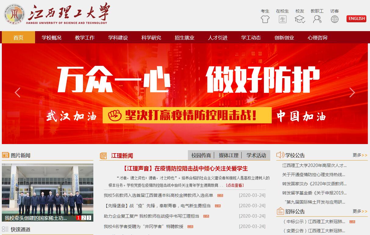 江西理工大學(xué)創(chuàng)辦于1958年,原名江西冶金學(xué)院,1988年更名為南方冶金學(xué)院,2004年更名為江西理工大學(xué)。學(xué)校曾先后隸屬于冶金工業(yè)部、中國(guó)有色金屬工業(yè)總公司,2013年成為江西省人民政府、工業(yè)和信息化部、教育部共建高校。學(xué)校是國(guó)務(wù)院批準(zhǔn)具有博士、碩士和學(xué)士學(xué)位授予權(quán)的單位,是一所以工學(xué)為主,理工結(jié)合,管理學(xué)、經(jīng)濟(jì)學(xué)、法學(xué)、文學(xué)、藝術(shù)學(xué)、教育學(xué)等多學(xué)科協(xié)調(diào)發(fā)展,面向全國(guó)招生和就業(yè)并有權(quán)接收華僑及港澳臺(tái)學(xué)生和留學(xué)生的教學(xué)研究型大學(xué);是寶鋼教育獎(jiǎng)評(píng)審高校;學(xué)校具有推薦優(yōu)秀本科生免試攻讀碩士學(xué)位資格;是我國(guó)有色金屬工業(yè)和鋼鐵工業(yè)重要的人才培養(yǎng)和科研基地,被譽(yù)為“有色冶金人才搖籃”。學(xué)校在贛州、南昌兩地有5個(gè)校區(qū),占地面積共計(jì)3700余畝。校本部位于享有“世界鎢都”、“稀土王國(guó)”、“客家搖籃”、“紅色故都”之美譽(yù)的國(guó)家歷史文化名城——江西省贛州市。學(xué)校1958年開辦本科教育,1980年開始碩士研究生教育,2013年開始博士研究生教育。現(xiàn)有16個(gè)學(xué)院,18個(gè)科研院所。全日制在校本科生2.2萬人,在校研究生3000余人。畢業(yè)生以其專業(yè)適應(yīng)性廣和“為人誠(chéng)實(shí)、基礎(chǔ)扎實(shí)、工作踏實(shí)”的特點(diǎn)而廣受社會(huì)歡迎,一次就業(yè)率和就業(yè)質(zhì)量保持在江西高校前列,并于2011年榮膺全國(guó)畢業(yè)生就業(yè)典型經(jīng)驗(yàn)高?!拔迨畯?qiáng)”,2017年榮膺全國(guó)創(chuàng)新創(chuàng)業(yè)典型經(jīng)驗(yàn)高?!拔迨畯?qiáng)”。據(jù)中國(guó)“世界500強(qiáng)”企業(yè)CEO畢業(yè)院校排名榜顯示,我校在2012年中國(guó)“世界500強(qiáng)”企業(yè)CEO畢業(yè)院校并列第5位。據(jù)中國(guó)校友會(huì)網(wǎng)發(fā)布的《中國(guó)大學(xué)排行榜》顯示,我校在2014 年“中國(guó)高校杰出校友排行榜”中名列第94 位。學(xué)校擁有1個(gè)全國(guó)示范院士工作站、1個(gè)博士后科研流動(dòng)站、1個(gè)博士后科研工作站、1個(gè)“離子型稀土資源開發(fā)利用”博士人才培養(yǎng)項(xiàng)目、2個(gè)一級(jí)博士點(diǎn),22個(gè)一級(jí)碩士點(diǎn),13個(gè)工程領(lǐng)域,6個(gè)專業(yè)學(xué)位點(diǎn),5個(gè)交叉二級(jí)學(xué)科點(diǎn),4個(gè)自主設(shè)置目錄外二級(jí)學(xué)科,其中“冶金工程”“礦業(yè)工程”“材料科學(xué)與工程”3個(gè)江西省一流建設(shè)學(xué)科。學(xué)科建設(shè)整體水平較高,7個(gè)一級(jí)學(xué)科在全國(guó)第四輪學(xué)科評(píng)估結(jié)果中榜上有名。學(xué)校是工商管理碩士、法律碩士、工程管理碩士、會(huì)計(jì)碩士、翻譯碩士培養(yǎng)單位。學(xué)?,F(xiàn)有71個(gè)本科專業(yè),其中64個(gè)本科專業(yè)面向全國(guó)招生,擁有國(guó)家特色專業(yè)3個(gè)、國(guó)家卓越工程師培養(yǎng)計(jì)劃專業(yè)6個(gè)、江西省特色專業(yè)19個(gè)、江西省卓越工程師培養(yǎng)計(jì)劃專業(yè)6個(gè)、江西省卓越法律人才培養(yǎng)基地1 個(gè)。學(xué)校建立了一支梯隊(duì)結(jié)構(gòu)合理、學(xué)術(shù)水平高、治學(xué)嚴(yán)謹(jǐn)?shù)膸熧Y隊(duì)伍。現(xiàn)有教職工2000多人(其中專任教師1360人、博士教師520人),其中,教育部“黃大年式教師團(tuán)隊(duì)”1個(gè),中國(guó)科學(xué)院、中國(guó)工程院雙聘院士3人,“萬人計(jì)劃”科技創(chuàng)新領(lǐng)軍人才1人,“萬人計(jì)劃”創(chuàng)業(yè)領(lǐng)軍人才1人,新世紀(jì)百千萬人才工程國(guó)家級(jí)人選5人,“863”首席科學(xué)家1人,中科院百人計(jì)劃2人(A類),教育部“新世紀(jì)優(yōu)秀人才支持計(jì)劃”1人,國(guó)家有突出貢獻(xiàn)的中青年專家、享受國(guó)務(wù)院特殊津貼人員、全國(guó)模范(優(yōu)秀)教師60余人;“井岡學(xué)者”特聘教授、“贛鄱英才555工程”領(lǐng)軍人才、省部級(jí)主要學(xué)科學(xué)術(shù)和技術(shù)帶頭人、江西省教學(xué)名師、“新世紀(jì)百千萬人才工程”人選、“井岡之星”青年科學(xué)家培養(yǎng)對(duì)象和高等學(xué)校中青年學(xué)科帶頭人近200人;正副教授700余人,博士生導(dǎo)師30余人,碩士生導(dǎo)師400余人。學(xué)校還聘請(qǐng)了嚴(yán)純?nèi)A、賴遠(yuǎn)明、周堯和、左鐵鏞、古德生、邱定蕃、孫傳堯、張文海等院士和130余名國(guó)內(nèi)外知名專家、學(xué)者為學(xué)校的兼職或客座教授,并聘有10多名外籍教師在校常年任教。以質(zhì)量立校、辦一流學(xué)府。學(xué)校堅(jiān)持“教學(xué)優(yōu)先、教師優(yōu)先、學(xué)生優(yōu)先”的工作原則和“教學(xué)是否滿意、教師是否滿意、學(xué)生是否滿意”的工作標(biāo)準(zhǔn),引導(dǎo)優(yōu)質(zhì)教學(xué)資源向教學(xué)一線集聚。學(xué)校擁有國(guó)家銅冶煉及加工工程技術(shù)研究中心、國(guó)家離子型稀土資源高效開發(fā)利用工程技術(shù)研究中心、離子型稀土資源開發(fā)及應(yīng)用教育部重點(d
