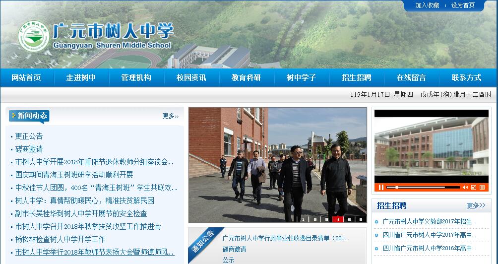 四川省廣元市樹人中學(xué)位于廣元市火車南站,是廣元市教育局直屬普通高中,也是2008年地震災(zāi)后重建學(xué)校。災(zāi)后重建為已有六十多年辦學(xué)歷史的我校重燃生命之火。如今,我校占地134畝,校園綠樹成蔭,環(huán)境清新安靜,文化生活豐富,人文環(huán)境和諧,辦學(xué)條件完善,是廣大學(xué)子讀書求學(xué)的理想場所。學(xué)?,F(xiàn)有教職工180余人,在校學(xué)生2000余人。校如其名,重建后的樹人中學(xué)始終踐行“以人為本、和諧發(fā)展”的辦學(xué)理念,形成了“立德樹人、勤勉創(chuàng)新”的校訓(xùn),“尊師、愛生、求真、篤學(xué)”的校風(fēng),“勤教善導(dǎo)、師表垂范”的教風(fēng)和“樂學(xué)善思、奮發(fā)向上”的學(xué)風(fēng)。在社會(huì)各界的傾心支持下,在各級領(lǐng)導(dǎo)的深切關(guān)懷下,在全校師生的共同努力下,學(xué)校找準(zhǔn)定位,嚴(yán)格管理,辦學(xué)水平逐步提高,辦學(xué)效益顯著,先后培養(yǎng)出考取清華大學(xué)、北京大學(xué)、武漢大學(xué)、華中師范大學(xué)等名牌高校的學(xué)生,獲得了多項(xiàng)榮譽(yù)。