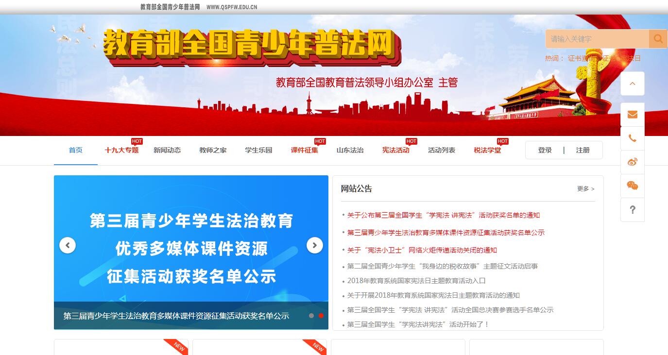貫徹落實(shí)黨的十八大提出的“全面推進(jìn)依法治國,深入開展法制宣傳教育,弘揚(yáng)社會主義法治精神,樹立社會主義法治理念,增強(qiáng)全社會學(xué)法尊法守法用法意識”的號召,進(jìn)一步推動教育部《全國教育系統(tǒng)開展法制宣傳教育的第六個五年規(guī)劃(2011-2015年)》的實(shí)施,加強(qiáng)對全國中小學(xué)校的法制宣傳和教育工作的指導(dǎo)與幫助,教育部委托北京外國語大學(xué)、外語教學(xué)與研究出版社共同建設(shè)、運(yùn)營“教育部全國青少年普法網(wǎng)”(以下簡稱“青少普法網(wǎng)”),旨在充分利用網(wǎng)絡(luò)等現(xiàn)代媒體和傳播方式,拓展和豐富中小學(xué)普法工作的途徑與方法,促進(jìn)各地各級學(xué)校普法工作的有效推進(jìn)。教育部對“青少普法網(wǎng)”的工作定位是:開展網(wǎng)絡(luò)普法教育課題研究,為全國青少年提供豐富的普法教育資源,為全國中小學(xué)開展法制教育提供支持,為教育領(lǐng)域開展普法工作提供平臺,為各地報送和展示普法成果提供支持?!扒嗌倨辗ňW(wǎng)”力求針對青少年學(xué)生的年齡和認(rèn)知特點(diǎn),整合全社會乃至國外的法制教育資源,以現(xiàn)代媒體和信息技術(shù)為依托,為全國青少年搭建一個屬于他們自己的、符合時代特點(diǎn)的創(chuàng)新型普法平臺,建立一個全國性青少年法治教育專業(yè)網(wǎng)站。本網(wǎng)站開設(shè)多個主題的普法欄目,融合各地區(qū)、各學(xué)校的各種載體的法制教育資源,通過系列動畫片、多種多媒體素材、在線網(wǎng)絡(luò)學(xué)習(xí)與評測、法制知識網(wǎng)頁游戲和手機(jī)游戲、遠(yuǎn)程在線即時視頻等多種呈現(xiàn)及推送方式,有效提高廣大師生對法治教育的興趣和參與普法工作的積極性,使我國的青少年普法工作再上新臺階。