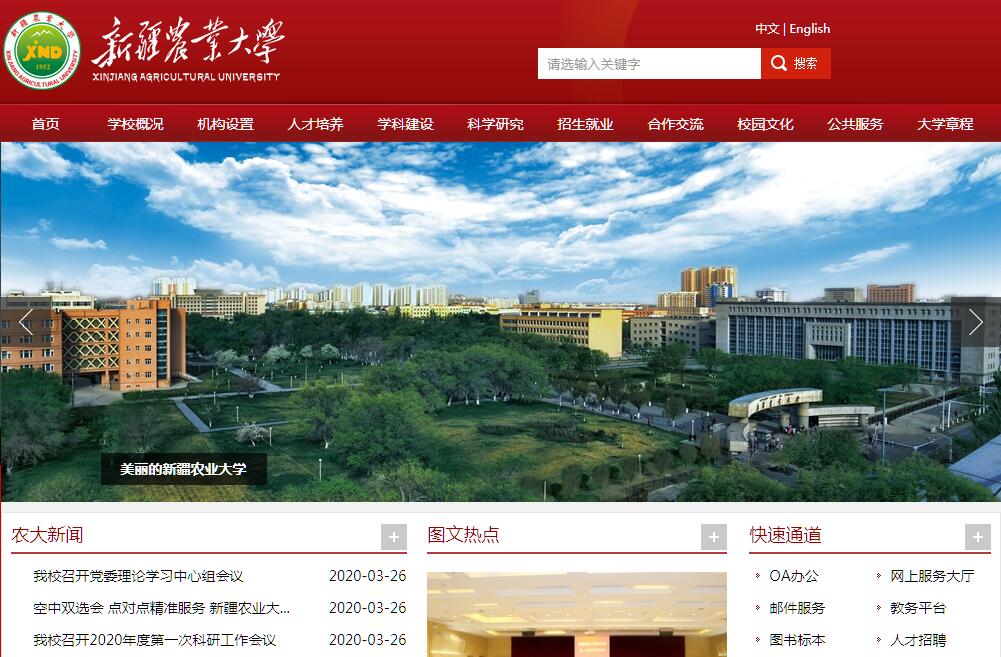 新疆農(nóng)業(yè)大學(xué)是一所以農(nóng)業(yè)科學(xué)為優(yōu)勢(shì)和特色,新疆維吾爾自治區(qū)重點(diǎn)建設(shè)的大學(xué)。學(xué)校位于烏魯木齊市美麗的老滿城。學(xué)校前身為八一農(nóng)學(xué)院,經(jīng)毛主席和中央軍委同意,由王震將軍于1952年在中國(guó)人民解放軍第二步兵學(xué)校的基礎(chǔ)上創(chuàng)建,隸屬于新疆軍區(qū),是新中國(guó)成立后新疆建立的第一所本科院校。1958年,學(xué)院劃歸新疆維吾爾自治區(qū)人民政府,更名為新疆八一農(nóng)學(xué)院。1995年,更名為新疆農(nóng)業(yè)大學(xué)。2006年獲教育部本科教學(xué)工作水平評(píng)估“優(yōu)秀”;2012年入選中西部高?;A(chǔ)能力建設(shè)工程高校。建校以來,學(xué)校始終秉承“自力更生、艱苦奮斗”的“南泥灣”精神,始終堅(jiān)持“屯墾戍邊辦大學(xué),穩(wěn)疆興疆育人才”辦學(xué)宗旨,始終堅(jiān)持“理論聯(lián)系實(shí)際、教學(xué)結(jié)合生產(chǎn)”的辦學(xué)方針,始終堅(jiān)持社會(huì)主義辦學(xué)方向,在祖國(guó)西部譜寫了人才培養(yǎng)的壯麗篇章。學(xué)校已經(jīng)形成了本、碩、博完整的人才培養(yǎng)體系, 現(xiàn)有6個(gè)博士后流動(dòng)站,8個(gè)博士學(xué)位一級(jí)學(xué)科授權(quán)點(diǎn),17個(gè)學(xué)術(shù)性碩士學(xué)位一級(jí)學(xué)科授權(quán)點(diǎn),7個(gè)專業(yè)學(xué)位碩士授權(quán)點(diǎn),59個(gè)本科專業(yè),分布在農(nóng)、理、工、經(jīng)、管、文、法等7個(gè)學(xué)科門類中。有19個(gè)學(xué)院,1個(gè)教學(xué)部,全日制在校生19531人。學(xué)校現(xiàn)有教職工1594人,專任教師950人,其中教授140人,副教授310人,有博士學(xué)位的335人。近五年,榮獲國(guó)家教學(xué)成果二等獎(jiǎng)1項(xiàng),省部級(jí)教學(xué)成果獎(jiǎng)6項(xiàng),建成國(guó)家精品視頻公開課4門,先后有37人次獲得省部級(jí)以上先進(jìn)榮譽(yù)。圍繞現(xiàn)代農(nóng)牧業(yè)、特色林果業(yè)、區(qū)域發(fā)展等領(lǐng)域建有國(guó)家重點(diǎn)學(xué)科、部委重點(diǎn)學(xué)科4個(gè),自治區(qū)級(jí)高峰、高原學(xué)科7個(gè),省部級(jí)研究中心、重點(diǎn)實(shí)驗(yàn)室15個(gè)。近五年,承擔(dān)國(guó)家科技支撐計(jì)劃、國(guó)家自然科學(xué)基金等縱向科研項(xiàng)目900項(xiàng),到位經(jīng)費(fèi)近4億元。我校已成為新疆農(nóng)業(yè)產(chǎn)業(yè)發(fā)展人才培養(yǎng)、科技開發(fā)和技術(shù)服務(wù)的重要支撐。校本部占地面積117.72萬㎡,擁有南山實(shí)習(xí)林場(chǎng)、三坪農(nóng)場(chǎng)教學(xué)實(shí)習(xí)基地等6個(gè)校屬實(shí)習(xí)基地9萬余畝,152個(gè)校外教學(xué)實(shí)習(xí)基地。學(xué)校固定資產(chǎn)12.33億元,教學(xué)科研儀器價(jià)值2.68億元,校舍總建筑面積65.47萬㎡。學(xué)校是自治區(qū)首批綠色大學(xué),自治區(qū)文明單位,校園綠草如茵,鋪青疊翠,學(xué)習(xí)環(huán)境優(yōu)美。學(xué)校先后與美國(guó)、俄羅斯、哈薩克斯坦等15個(gè)國(guó)家和地區(qū)的33所大學(xué)及研究機(jī)構(gòu)建立了合作關(guān)系。在巴基斯坦建成的孔子學(xué)院成為全球100所示范孔子學(xué)院之一。成立“新疆中亞現(xiàn)代農(nóng)業(yè)科技創(chuàng)新與交流中心”等國(guó)際合作平臺(tái)。發(fā)起成立“絲綢之路沿線國(guó)家農(nóng)業(yè)院校聯(lián)盟”,有力推動(dòng)了絲綢之路經(jīng)濟(jì)帶沿線國(guó)家農(nóng)業(yè)院校高等教育的共同發(fā)展。六十多年來,新疆農(nóng)業(yè)大學(xué)培養(yǎng)的12萬名畢業(yè)生積極投身于屯墾戍邊、穩(wěn)疆興疆的偉大事業(yè)。展望未來,新疆農(nóng)業(yè)大學(xué)將繼續(xù)以人才強(qiáng)校為根本、學(xué)科建設(shè)為支撐、教育質(zhì)量為生命、科技創(chuàng)新為動(dòng)力、服務(wù)社會(huì)為己任、文化傳承創(chuàng)新為使命,圍繞區(qū)域發(fā)展,培養(yǎng)合格建設(shè)者和可靠接班人,向建設(shè)絲綢之路經(jīng)濟(jì)帶特色鮮明的高水平現(xiàn)代大學(xué)目標(biāo)奮進(jìn)。