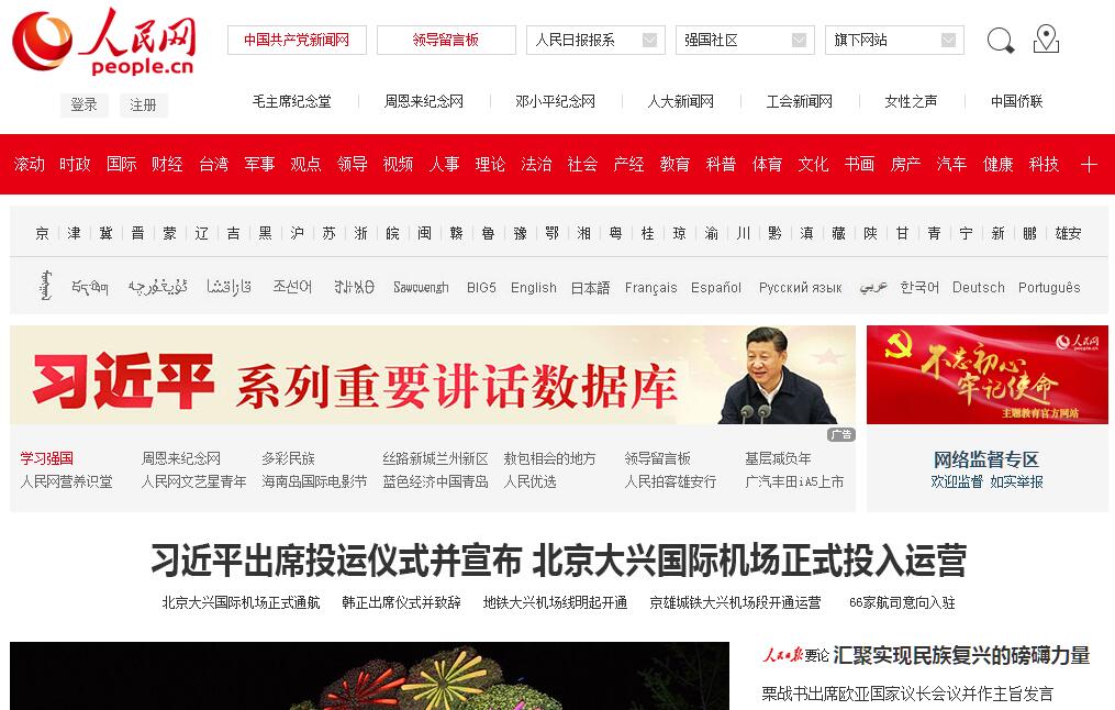 人民網(wǎng),是世界十大報(bào)紙之一《人民日報(bào)》建設(shè)的以新聞為主的大型網(wǎng)上信息發(fā)布平臺,也是互聯(lián)網(wǎng)上最大的中文和多語種新聞網(wǎng)站之一。作為國家重點(diǎn)新聞網(wǎng)站,人民網(wǎng)以新聞報(bào)道的權(quán)威性、及時(shí)性、多樣性和評論性為特色,在網(wǎng)民中樹立起了“權(quán)威媒體、大眾網(wǎng)站”的形象。