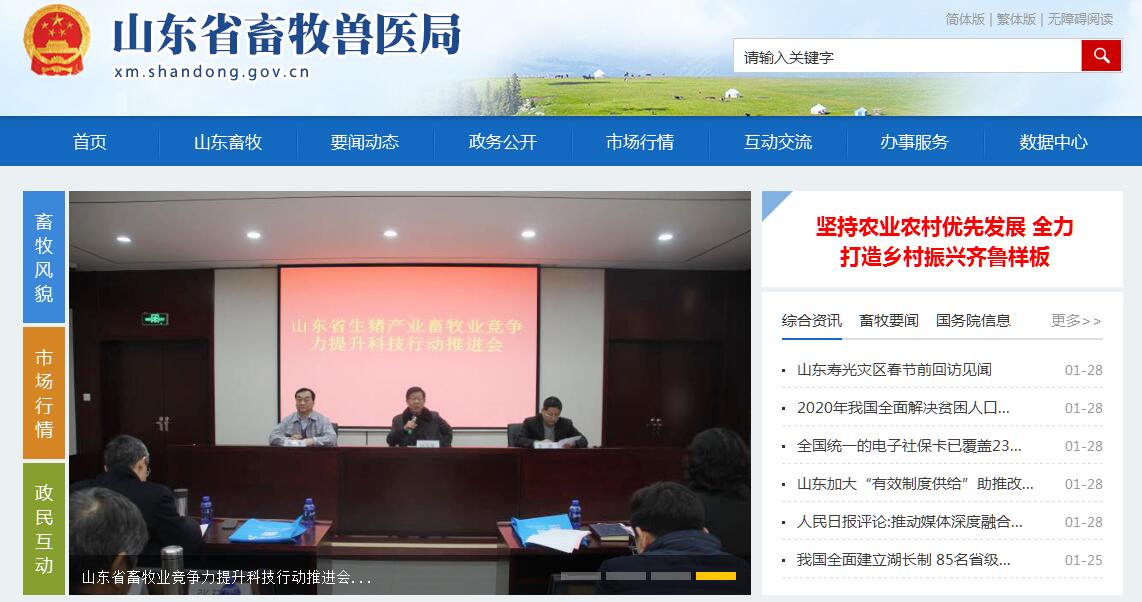 山東省畜牧獸醫(yī)局主要職責(zé):(一)貫徹執(zhí)行畜牧獸醫(yī)法律、法規(guī)和方針、政策;負(fù)責(zé)起草全省畜牧業(yè)地方性法規(guī)、規(guī)章草案;擬訂全省畜牧業(yè)發(fā)展的規(guī)劃并組織實施;負(fù)責(zé)起草畜禽屠宰地方性法規(guī)、規(guī)章草案,擬訂相關(guān)規(guī)劃、政策并組織實施;指導(dǎo)、監(jiān)督全省畜牧業(yè)行政執(zhí)法工作;負(fù)責(zé)畜牧業(yè)對外經(jīng)濟技術(shù)交流與合作。(二)負(fù)責(zé)全省畜牧業(yè)監(jiān)督管理工作。指導(dǎo)畜牧業(yè)結(jié)構(gòu)調(diào)整、標(biāo)準(zhǔn)化生產(chǎn)和產(chǎn)業(yè)化建設(shè);負(fù)責(zé)全省種畜禽管理工作;負(fù)責(zé)奶畜飼養(yǎng)監(jiān)督管理工作;依法指導(dǎo)、扶持涉牧農(nóng)村合作經(jīng)濟組織的建設(shè)與發(fā)展;負(fù)責(zé)畜禽養(yǎng)殖廢棄物綜合利用的指導(dǎo)和服務(wù)工作。(三)負(fù)責(zé)全省動物防疫工作。制定全省動物疫病防治規(guī)劃并組織實施;組織、指導(dǎo)全省動物防疫、動物及其產(chǎn)品的檢疫監(jiān)督工作;負(fù)責(zé)全省畜禽標(biāo)識及疫病可追溯體系建設(shè);負(fù)責(zé)無規(guī)定動物疫病區(qū)監(jiān)督管理工作;負(fù)責(zé)病死畜禽無害化處理監(jiān)管工作;負(fù)責(zé)突發(fā)重大動物疫情應(yīng)急管理工作。(四)承擔(dān)全省畜產(chǎn)品質(zhì)量安全監(jiān)督管理工作;負(fù)責(zé)畜禽屠宰環(huán)節(jié)質(zhì)量安全監(jiān)督管理;牽頭負(fù)責(zé)“瘦肉精”監(jiān)管工作;負(fù)責(zé)生鮮乳生產(chǎn)、收購環(huán)節(jié)質(zhì)量安全監(jiān)督管理;負(fù)責(zé)獸藥、飼料添加劑等其他畜牧業(yè)投入品質(zhì)量及使用的監(jiān)督管理。(五)負(fù)責(zé)獸藥、獸醫(yī)器械監(jiān)督管理工作;組織實施獸藥、獸藥殘留限量和殘留檢測方法國家標(biāo)準(zhǔn)。負(fù)責(zé)全省飼料、飼料添加劑監(jiān)督管理工作;負(fù)責(zé)全省草原(場)監(jiān)督管理和草種管理工作;承擔(dān)全省草原(場)防火工作;負(fù)責(zé)飼料、飼料添加劑、添加劑預(yù)混合飼料生產(chǎn)企業(yè)監(jiān)督管理工作。(六)組織制定全省畜牧業(yè)科技、教育培訓(xùn)、技術(shù)推廣規(guī)劃并組織實施;組織實施畜牧業(yè)重大科研項目攻關(guān);負(fù)責(zé)收集、發(fā)布畜牧業(yè)信息,組織推動畜牧業(yè)信息化建設(shè),指導(dǎo)信息服務(wù);開展畜牧統(tǒng)計、監(jiān)測、預(yù)警工作。(七)負(fù)責(zé)毛皮動物養(yǎng)殖、胴體處置監(jiān)管工作;指導(dǎo)全省畜牧獸醫(yī)隊伍建設(shè);指導(dǎo)畜產(chǎn)品加工發(fā)展,承擔(dān)省防控重大動物疫病指揮部辦公室的日常工作。(八)承辦省委、省政府及省農(nóng)業(yè)廳交辦的其他事項。