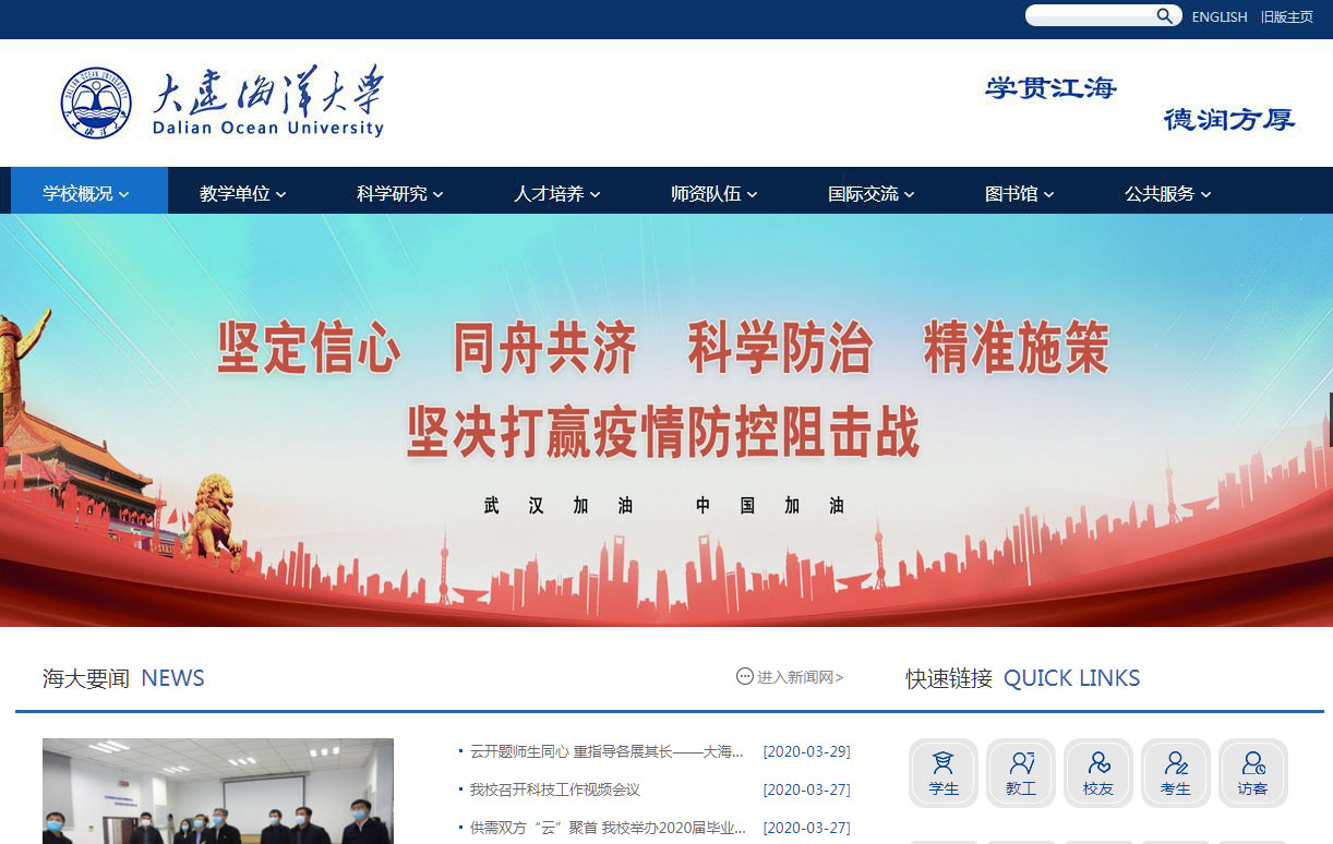大連海洋大學(xué)是我國北方地區(qū)唯一的一所以海洋和水產(chǎn)學(xué)科為特色,農(nóng)、工、理、管、文、法、經(jīng)、藝等學(xué)科協(xié)調(diào)發(fā)展的多科性高等院校。學(xué)校創(chuàng)建于1952年,前身為東北水產(chǎn)技術(shù)學(xué)校,1958年升格為大連水產(chǎn)??茖W(xué)校,1978年升格為大連水產(chǎn)學(xué)院。2000年由農(nóng)業(yè)部劃轉(zhuǎn)遼寧省管理。2010年經(jīng)教育部批準(zhǔn)更名為大連海洋大學(xué)。學(xué)校坐落于美麗的海濱城市大連。有黃海校區(qū)、渤海校區(qū)和瓦房店校區(qū)3個(gè)校區(qū),占地面積80萬平方米,教學(xué)、科研使用海域面積67萬平方米,總建筑面積40萬平方米。學(xué)?,F(xiàn)設(shè)有19個(gè)學(xué)院、1個(gè)教學(xué)部。有教職工近1200人,全日制在校生14000余人。有一級學(xué)科碩士學(xué)位授權(quán)點(diǎn)12個(gè)、二級學(xué)科碩士學(xué)位授權(quán)點(diǎn)42個(gè),有碩士專業(yè)學(xué)位授權(quán)領(lǐng)域11個(gè),分布在農(nóng)業(yè)、工程、法律、翻譯等4個(gè)類別,有46個(gè)本科專業(yè)。學(xué)校學(xué)科體系完善,優(yōu)勢特色學(xué)科明顯。水產(chǎn)一級學(xué)科為遼寧省“雙一流”建設(shè)學(xué)科,該學(xué)科在教育部第四輪學(xué)科評估中并列第四;擁有國家級多學(xué)科協(xié)同創(chuàng)新平臺——大連海洋大學(xué)新農(nóng)村發(fā)展研究院。學(xué)校不斷深化教育教學(xué)改革,積極承擔(dān)質(zhì)量工程項(xiàng)目和教研教改項(xiàng)目。“充分發(fā)揮多學(xué)科優(yōu)勢,建設(shè)有自己特色的淡水漁業(yè)教學(xué)體系”曾獲國家級優(yōu)秀教學(xué)成果一等獎(jiǎng),“水產(chǎn)養(yǎng)殖學(xué)專業(yè)(本科)教學(xué)內(nèi)容、課程體系及人才培養(yǎng)模式改革的研究與實(shí)踐”曾獲國家級優(yōu)秀教學(xué)成果二等獎(jiǎng)。在近三屆教學(xué)成果評選中,學(xué)校共獲得省級優(yōu)秀教學(xué)成果獎(jiǎng)38項(xiàng),其中一等獎(jiǎng)7項(xiàng)。有1個(gè)國家級人才培養(yǎng)模式創(chuàng)新實(shí)驗(yàn)區(qū);1個(gè)國家級實(shí)驗(yàn)教學(xué)示范中心,7個(gè)省級實(shí)驗(yàn)教學(xué)示范中心建設(shè)項(xiàng)目,4個(gè)省級虛擬仿真實(shí)驗(yàn)教學(xué)中心建設(shè)項(xiàng)目;1個(gè)國家級大學(xué)生實(shí)踐教育基地建設(shè)項(xiàng)目,9個(gè)省級大學(xué)生實(shí)踐教育基地建設(shè)項(xiàng)目,1個(gè)省級大學(xué)生創(chuàng)新創(chuàng)業(yè)教育基地建設(shè)項(xiàng)目,1個(gè)省級實(shí)訓(xùn)培訓(xùn)基地。獲批1個(gè)國家級卓越農(nóng)林人才教育培養(yǎng)計(jì)劃改革試點(diǎn)項(xiàng)目,1個(gè)國家級“新工科”研究與實(shí)踐項(xiàng)目,1個(gè)國家級地方高校本科專業(yè)綜合改革試點(diǎn)專業(yè),3個(gè)國家級特色專業(yè),4個(gè)省級本科特色(示范)專業(yè),3個(gè)省級本科綜合改革試點(diǎn)專業(yè),3個(gè)省級本科工程人才培養(yǎng)模式改革試點(diǎn)專業(yè),1個(gè)省級本科重點(diǎn)支持專業(yè);9個(gè)省級向應(yīng)用型轉(zhuǎn)變試點(diǎn)專業(yè),3個(gè)省級向應(yīng)用型轉(zhuǎn)變示范專業(yè);1個(gè)省級本科課程體系國際化試點(diǎn)專業(yè);1個(gè)省級創(chuàng)新創(chuàng)業(yè)教育改革試點(diǎn)專業(yè);1個(gè)遼寧省緊缺本科人才培養(yǎng)基地。已建成國家級精品課程1門、省級精品課程22門,省級精品資源共享課4門,省級精品視頻公開課3門。學(xué)校有較為完備的教學(xué)科研平臺。有農(nóng)業(yè)部刺參遺傳育種中心1個(gè),國家海藻加工技術(shù)研發(fā)分中心1個(gè),農(nóng)業(yè)部重點(diǎn)開放實(shí)驗(yàn)室1個(gè),教育部國別與區(qū)域研究中心1個(gè),遼寧省協(xié)同創(chuàng)新中心1個(gè),省高校重大科技平臺2個(gè),省級重點(diǎn)實(shí)驗(yàn)室9個(gè),省級工程技術(shù)研究中心4個(gè),省級工程研究中心2個(gè),省級科技服務(wù)中心1個(gè),省高校重點(diǎn)實(shí)驗(yàn)室4個(gè)。學(xué)??萍紕?chuàng)新能力不斷增強(qiáng)?!笆濉币詠?,學(xué)校承擔(dān)了國家863計(jì)劃、國家科技支撐、國家自然科學(xué)基金、國家海洋公益專項(xiàng)等各級各類科研項(xiàng)目1200余項(xiàng),其中國家級152項(xiàng),省部級600項(xiàng)。有46項(xiàng)科研成果獲市級及以上獎(jiǎng)勵(lì),其中國家級2項(xiàng),省部級25項(xiàng)?!昂K靥粮咝鍧嶐B(yǎng)殖技術(shù)研究與應(yīng)用”、“刺參健康養(yǎng)殖綜合技術(shù)研究及產(chǎn)業(yè)化應(yīng)用”分別于2012年、2015年獲得國家科技進(jìn)步二等獎(jiǎng)。學(xué)校主持完成的“刺參疾病的發(fā)生機(jī)制及無公害防控技術(shù)研究與示范”于2013年獲得國家海洋局海洋科學(xué)技術(shù)二等獎(jiǎng);學(xué)校主持完成的“北方典型河口灘涂生物資源恢復(fù)與生境修復(fù)關(guān)鍵技術(shù)研究與示范”獲2014年獲得遼寧省科技進(jìn)步二等獎(jiǎng);學(xué)校主持完成的“沙蠶生物濾池研制及其在海珍品循環(huán)養(yǎng)殖中應(yīng)用”獲2015年獲得遼寧省技術(shù)發(fā)明二等獎(jiǎng)。學(xué)校主持完成的“基于生態(tài)系統(tǒng)的北方海域全產(chǎn)業(yè)鏈現(xiàn)代海洋牧場生產(chǎn)