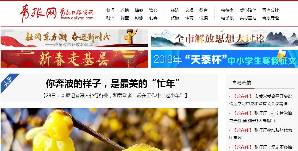 青島青報網文化傳播有限公司隸屬于青島日報報業(yè)集團旗下,是一個平臺型的媒體傳播機構,擁有100多人的立體傳播隊伍,形成了縱深性的精準傳播體系,具備專業(yè)而優(yōu)秀的文案能力,傳播覆蓋精英受眾群體,特別是依靠專業(yè)社區(qū)平臺的建設,具備了社區(qū)傳播平臺能力,其獨特的受眾交互傳播模式深受歡迎,策劃了一批成功傳播營銷案例。公司以“原創(chuàng)的力量、更大的影響”為傳播價值取向,致力于打造創(chuàng)意策劃、媒介整合、線上線下、報網一體的綜合性傳播平臺,能夠勝任于各產業(yè)各領域之服務項目,立足青島本地市場,覆蓋半島區(qū)域,與青島各大政府機構、各大企業(yè)、民間社團擁有良好的合作關系,資源整合能力強、社會影響力大、品牌效應足。公司按照平臺化運行的戰(zhàn)略,與市委市政府各部門如市發(fā)改委、市經信委、市建委、市交通委、市科技局、市人社局、市文廣新局、市民政局、青島西海岸、高新區(qū)、保稅區(qū)等結成戰(zhàn)略合作伙伴,與青島所屬各區(qū)政府機構以及國信集團、紅領集團、青啤集團、青建集團、交運集團、軟控等幾十家大型公司都有著密切的合作,已成為半島區(qū)域特別是本地政府機構、企業(yè)廣泛認可的文化傳播平臺。公司擁有目前國內惟一一家實行報網一體化運行的副省級城市媒體傳播平臺,具有立體交互的全天候傳播能力,擁有《青島日報》、《青報網》、青島日報官方微信、官方微博、青島日報新聞客戶端的綜合傳播矩陣,以及青島創(chuàng)客聯(lián)盟官方微信、青島創(chuàng)客全媒介平臺(《青島創(chuàng)客周刊》以及青島創(chuàng)客官方微博、微信)、愛心陪伴官方公益微信、青報讀心專刊及官方微信平臺,其媒體受眾具有高度覆蓋性和展延性,從黨政機關企事業(yè)單位的高級管理人員、白領階層,到基層社區(qū)受眾,以及80、90后受眾,形成了中高層消費人群和新興消費人群以及集團消費人群傳播受眾圈,涵蓋了青島乃至半島區(qū)域各行各業(yè)的精英人士。青島日報:《青島日報》是中共青島市委機關報,創(chuàng)刊于1949年,秉承“高端、主流、權威、親民”的辦報理念,全面覆蓋青島地區(qū)的機關、企事業(yè)單位和社會各階層,是青島地區(qū)政治經濟等政策信息和重大新聞的最權威發(fā)布者,是房地產、汽車、機電、餐飲、旅游等廣告客戶的首選媒體。青島日報加快向平臺型媒體轉型的步伐,同時,青島日報在努力探索新形勢下的改革與經營,通過采編制作體系、人才引進、激勵機制和傳播平臺建設等方面的探索創(chuàng)新,青島日報黨報品牌進一步提升、社會影響持續(xù)放大、新聞產品日益豐富。