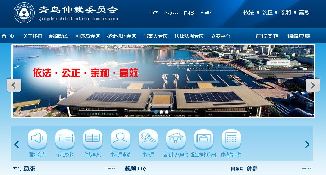 1994年8月31日第八屆全國人民代表大會常務(wù)委員會第九次會議通過了《中華人民共和國仲裁法》(以 下簡稱《仲裁法》),并于1995年9月1日起施行。仲裁法對仲裁機構(gòu)的設(shè)立作出了明確規(guī)定:“仲裁委員會可以在直轄市和省、自治區(qū)人民政府所在地的市設(shè) 立,也可以根據(jù)需要在其他設(shè)區(qū)的市設(shè)立,不按行政區(qū)劃層層設(shè)立?!?994年8月31日第八屆全國人民代表大會常務(wù)委員會第九次會議通過了《中華人民共和國仲裁法》(以 下簡稱《仲裁法》),并于1995年9月1日起施行。仲裁法對仲裁機構(gòu)的設(shè)立作出了明確規(guī)定:“仲裁委員會可以在直轄市和省、自治區(qū)人民政府所在地的市設(shè) 立,也可以根據(jù)需要在其他設(shè)區(qū)的市設(shè)立,不按行政區(qū)劃層層設(shè)立。”青島仲裁委員會是根據(jù)《仲裁法》的規(guī)定,由青島市人民政府組建的常設(shè)仲裁機構(gòu),是依法對平等主體的公民、法人和其他經(jīng)濟組織之間發(fā)生的合同糾紛和其他財產(chǎn) 權(quán)益糾紛進行仲裁的專門機構(gòu)。其聘任從事仲裁、審判和律師工作滿8年或具有高級職稱的法律、教學(xué)、經(jīng)濟貿(mào)易的國內(nèi)外專家學(xué)者擔任仲裁員。它依法獨立行使仲 裁權(quán),本著自愿、獨立、公平、合理、節(jié)省、保密、一裁終局的原則,依據(jù)事實和法律、參照國際慣例和商業(yè)習慣,按照當事人的意愿由各方面專家進行仲裁活動并 作出終局裁決。青島仲裁委員會自成立以來,邊宣傳邊推介邊建設(shè)邊管理,從仲裁法規(guī)建設(shè)到仲裁案件管理,從仲裁法律宣傳到仲裁制度推介,做了大量的基礎(chǔ)性工 作,初步實現(xiàn)了仲裁管理的規(guī)范化、法制化,形成了覆蓋全市的仲裁網(wǎng)絡(luò)。青島仲裁委員會根據(jù)《仲裁法》制定《青島仲裁委員會章程》(以下簡稱《章程》)、《青島仲裁委員會仲裁規(guī)則》(以下簡稱《仲裁規(guī)則》)?!墩鲁獭芬?guī)定仲裁 委員會實行任期制,1996至2003年,每屆任期3年,2003年7月,青島仲裁委員會二屆八次會議對《章程》進行了修訂,仲裁委員會任期由3年改為5 年,可以連任。青島仲裁委員會定期召開全委會,向全委會報告工作,審議增聘仲裁員,討論表彰“十佳仲裁員”、“優(yōu)秀仲裁員”、“仲裁工作先進集體和個 人”、“優(yōu)秀仲裁聯(lián)絡(luò)員”等,討論修訂《章程》和《仲裁規(guī)則》,制定仲裁發(fā)展工作規(guī)劃等。青島仲裁委員會下設(shè)專家咨詢委員會、發(fā)展指導(dǎo)委員會,聘任國 (境)內(nèi)外仲裁員525名。青島仲裁委員會辦公室是青島仲裁委員會的日常辦事機構(gòu),主要負責辦理仲裁案件的受理、審理,收取和管理仲裁費,宣傳仲裁法,仲裁委員會內(nèi)部事務(wù)管理等。 1996~2005年,先后出臺了《仲裁員管理辦法》等24項仲裁業(yè)務(wù)建設(shè)規(guī)章制度,制定了《思想政治工作制度》、《黨風廉政建設(shè)規(guī)定》、《工作人員教育 培訓(xùn)制度》等20項政治和精神文明建設(shè)規(guī)定,制定了《會議制度》、《車輛管理辦法》、《財務(wù)開支報銷辦法》等25項行政后勤管理辦法。青島仲裁委員會仲裁案件類型涉及買賣、承攬、建設(shè)、房地產(chǎn)、租賃、金融、保險、對外經(jīng)貿(mào)、海事海商等23大類,基本覆蓋了青島市社會發(fā)展、經(jīng)濟建設(shè)的主要 領(lǐng)域。2005年7月18日通過了ISO9001質(zhì)量管理體系認證,成為全國第一家通過ISO9001國際質(zhì)量管理體系認證的仲裁機構(gòu)。作為國內(nèi)知名仲裁 機構(gòu)之一,青島仲裁委員會的受案數(shù)量和標的額均位于全國前列,2000年9月,被評為 “全省優(yōu)秀仲裁委”。青島仲裁事業(yè)經(jīng)過多年的發(fā)展,已初步實現(xiàn)了仲裁管理的規(guī)范化、法制化,形成了覆蓋全市的仲裁網(wǎng)絡(luò)。