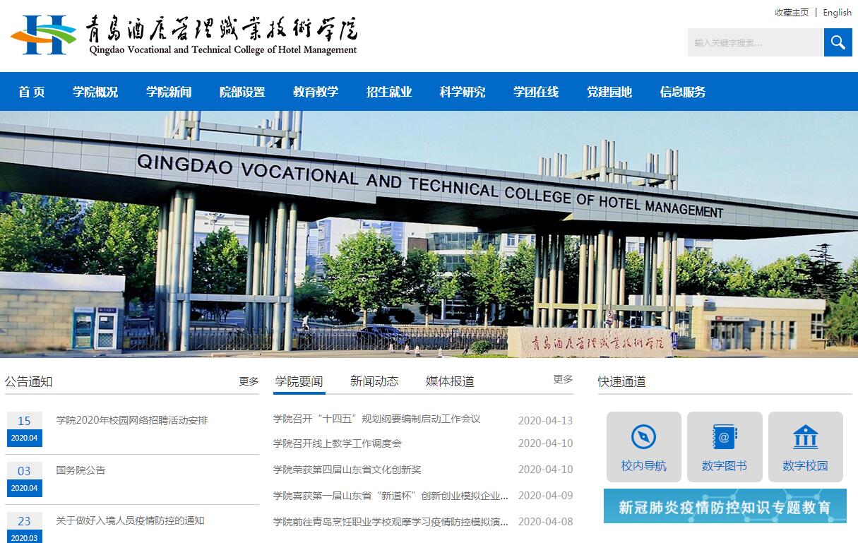 青島酒店管理職業(yè)技術(shù)學(xué)院坐落于素有“紅瓦綠樹、碧海藍(lán)天”之稱的中國最美海濱城市、中國最宜居城市——青島,是經(jīng)教育部批準(zhǔn)成立的省屬公辦全日制普通高校。學(xué)院辦學(xué)歷史可追溯到1945年成立的私立青島商科職業(yè)學(xué)校,經(jīng)過幾代人的不懈努力和矢志追求,2002年在山東省青島商業(yè)學(xué)校和山東省飲食服務(wù)技工學(xué)?;A(chǔ)上創(chuàng)辦青島酒店管理職業(yè)技術(shù)學(xué)院。學(xué)院是我國第一所獨(dú)立設(shè)置的酒店管理職業(yè)技術(shù)學(xué)院,是山東省首批特色名校、山東省首批優(yōu)質(zhì)高等職業(yè)院校、青島市首批品牌高職院校、教育部第一批教育信息化試點(diǎn)單位,也是“全國職業(yè)教育先進(jìn)單位”“山東省職業(yè)教育先進(jìn)單位”“省級文明單位”“青島市文明校園”。學(xué)院是一所特色鮮明的現(xiàn)代服務(wù)業(yè)高職院校,設(shè)置有旅游與酒店管理學(xué)院、工商管理學(xué)院、酒店工程學(xué)院、信息工程技術(shù)學(xué)院、烹飪學(xué)院、藝術(shù)學(xué)院、基礎(chǔ)教學(xué)部、思想政治課教學(xué)部8個二級院部,開設(shè)有酒店管理、旅游管理、烹調(diào)工藝與營養(yǎng)等37個專業(yè),全日制在校生14000人。其中,全國職業(yè)院校示范專業(yè)點(diǎn)2個,中央財政支持建設(shè)專業(yè)2個;專本貫通分段培養(yǎng)專業(yè)2個,省級示范專業(yè)2個,省級特色專業(yè)7個,省級重點(diǎn)建設(shè)專業(yè)10個,省級品牌專業(yè)群2個;國家級現(xiàn)代學(xué)徒制試點(diǎn)項(xiàng)目1個,省市級現(xiàn)代學(xué)徒制試點(diǎn)項(xiàng)目7個,牽頭開發(fā)省級教學(xué)指導(dǎo)方案7個;青島市高職重點(diǎn)建設(shè)專業(yè)6個;山東半島專業(yè)辦學(xué)聯(lián)盟1個,青島市中高職專業(yè)辦學(xué)聯(lián)盟2個。旅游專業(yè)大類辦學(xué)實(shí)力連續(xù)六年排名省內(nèi)高職第一。學(xué)院師資力量雄厚、結(jié)構(gòu)合理,現(xiàn)有教職員工650名,其中擁有副高以上職稱教師220名,“雙師型”教師占90%以上。其中教育部職業(yè)教育教學(xué)指導(dǎo)委員會專家3名,省級教學(xué)指導(dǎo)委員會專家9名,全國青年崗位能手3人,山東省教學(xué)名師3人,省級教學(xué)團(tuán)隊5個,省級青年技能名師4人,省級職業(yè)教育名師工作室2個,省級職業(yè)教育技藝技能傳承創(chuàng)新平臺2個,青島高校教學(xué)名師6人,山東省先進(jìn)工作者1人、旅游教育名師1人、旅游教育杰出青年教師1人、青島市勞動模范2人、青島市會計領(lǐng)軍人才1人。 學(xué)院大力推進(jìn)課程、實(shí)踐教學(xué)條件建設(shè),建有國家在線開放課程2門,省級以上精品課程37門,省級精品資源共享課7門,省級教學(xué)資源庫2個,青島市首批現(xiàn)代學(xué)徒制特色課程4門;擁有國家教學(xué)成果獎1項(xiàng),省級教學(xué)成果獎13項(xiàng),省級教改立項(xiàng)25項(xiàng);省級及以上優(yōu)秀或規(guī)劃教材22本;中央財政支持實(shí)訓(xùn)基地1個,省級重點(diǎn)實(shí)驗(yàn)實(shí)訓(xùn)室1個;擁有9個類別的職業(yè)技能培訓(xùn)和鑒定基地,建有青島市國家職業(yè)鑒定九所和國家郵政局快遞職業(yè)鑒定中心等技能鑒定考點(diǎn)和中心,能進(jìn)行31個工種的技能考核,基本覆蓋了所有專業(yè);擁有各類生產(chǎn)型實(shí)訓(xùn)室72個。學(xué)院重視學(xué)生技能培養(yǎng),2012年以來,累計獲得烹飪、中英文導(dǎo)游、中餐宴會設(shè)計、西餐宴會設(shè)計等4個國賽項(xiàng)目一等獎20個,獲得烹飪賽項(xiàng)、中餐宴會設(shè)計賽項(xiàng)全國一等獎第一名。累計獲得省市級、行業(yè)協(xié)會等各類職業(yè)技能大賽一等獎(金牌)100多項(xiàng),涵蓋了旅游、酒店、烹飪、信息技術(shù)、英語、創(chuàng)業(yè)教育等10余個專業(yè)領(lǐng)域。學(xué)院堅持開放辦學(xué),全面推進(jìn)國際化辦學(xué)工作。學(xué)院是全國首批“中美高素質(zhì)技能型、應(yīng)用型人才聯(lián)合培養(yǎng)百千萬交流計劃”項(xiàng)目院校,與加拿大卡納多學(xué)院、澳大利亞南澳TAFE學(xué)院、臺灣高雄餐旅大學(xué)等10個國家和地區(qū)的20余所院校、16個教育機(jī)構(gòu)建立合作關(guān)系,廣泛開展師資交流、學(xué)生交流、境外實(shí)習(xí)、外籍教師引進(jìn)、優(yōu)質(zhì)教育資源引進(jìn)等工作,2017年被評為全國“高等職業(yè)院校國際影響力50強(qiáng)”,2018年被評為“亞太職業(yè)教育影響力50強(qiáng)”,榮獲世界職業(yè)院校與技術(shù)大學(xué)聯(lián)盟卓越獎。學(xué)院科研和社會服務(wù)能力顯著增強(qiáng),舉辦有2個全國高等職業(yè)學(xué)校專業(yè)骨干教師培訓(xùn)項(xiàng)目、4個省級骨干教師培訓(xùn)項(xiàng)目;建設(shè)有國家科技部“海斯曼”創(chuàng)客島眾創(chuàng)空間;山東社科基金項(xiàng)目、山東省哲學(xué)社會科學(xué)規(guī)劃項(xiàng)目、國家旅游局專項(xiàng)等國家、省市級科研課題96項(xiàng);與李滄區(qū)人民政府和青島市旅游局簽署了全面戰(zhàn)略合作框架協(xié)議,助力區(qū)域經(jīng)濟(jì)社會發(fā)展;自主開發(fā)《山東省社會導(dǎo)游員管理體系標(biāo)準(zhǔn)》《魯菜標(biāo)準(zhǔn)化