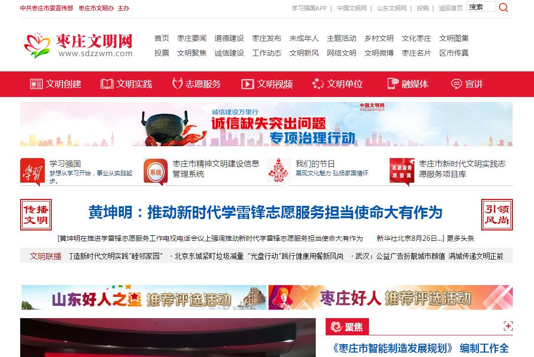 | 網(wǎng)站簡介: 棗莊精神文明網(wǎng)網(wǎng)站(簡稱“棗莊文明網(wǎng)”)是中共棗莊市委宣傳部、棗莊市文明辦的門戶網(wǎng)站, 是棗莊市宣傳思想文化工作和精神文明建設(shè)的重要窗口。網(wǎng)站主要發(fā)布宣傳思想文化和精神文明建設(shè)重要信息,進行理論宣傳和形勢政策教育,開展思想道德建設(shè)和精神文明創(chuàng)建活動,傳播文明、引領(lǐng)風尚,促進社會文明水平和公民文明素質(zhì)的提高。棗莊文明網(wǎng)建設(shè)目標是成為推動宣傳思想工作和精神文明建設(shè)的工作平臺,傳播文明、引領(lǐng)風尚的重要陣地,文明辦網(wǎng)、建設(shè)中國特色網(wǎng)絡(luò)文化的示范窗口。 |