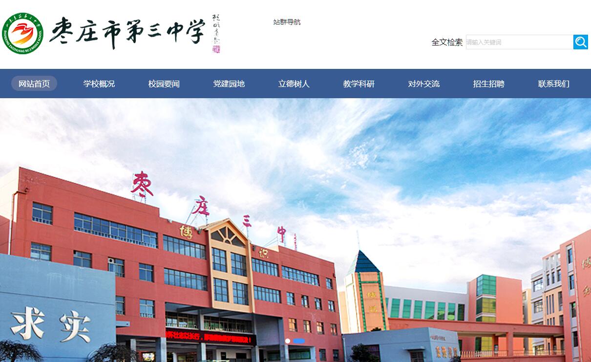 棗莊市第三中學(xué)位于棗莊市市中區(qū),南鄰萬畝榴園,運(yùn)河古城;北依紅荷濕地,墨子故里;東靠沂蒙紅區(qū),臨沂新城;西傍微山湖畔,薛國舊地。學(xué)校始創(chuàng)于1956年,始名山東省嶧縣第三中學(xué)。1960年更名為棗莊市第三中學(xué),1972年更名為棗莊市向陽中學(xué),1978年重新恢復(fù)為棗莊市第三中學(xué)。學(xué)校1962年被省教育廳確定為省重點中學(xué),1979年被省教育廳確定為全省首批辦好的十九所重點高中之一,1993年被省教育廳評為山東省首批規(guī)范化學(xué)校,2006年被省教育廳評為山東省首批高中教學(xué)示范學(xué)校,2011年被省教育廳評為“全省教育系統(tǒng)行風(fēng)建設(shè)先進(jìn)單位”,2012年被教育部評為“國家級平安和諧校園”,2015年被教育部評為全國首批中小學(xué)心理健康教育特色學(xué)校,是棗莊市唯一一所市直高中。學(xué)校理念:學(xué)校始終秉持“服務(wù)學(xué)生成長、助力學(xué)生成才、致力學(xué)生成功”辦學(xué)理念,積極踐行歐陽中石先生提煉并親筆題寫的校訓(xùn)“厚德容廣,弘文學(xué)勤”,形成“謙誠有容”校風(fēng),以打造“齊魯強(qiáng)校、中華名?!睘檗k學(xué)目標(biāo),大力推進(jìn)素質(zhì)教育。目前,棗莊市第三中學(xué)分東校、西校、新城三個校區(qū)。西校區(qū)1999年建成投入使用,新城校區(qū)在校學(xué)生7000余人,教職工615人,共有特級教師8人,享受國務(wù)院政府特殊津貼2人,全國優(yōu)秀教師4人,省市級學(xué)科帶頭人4人,齊魯名師2人,省級教學(xué)能手10人,棗莊名師2人,市級教學(xué)能手、骨干教師60余人。特色內(nèi)涵:學(xué)校積極推進(jìn)全員育人導(dǎo)師制和“學(xué)、查、糾”常規(guī)效能管理兩大平臺建設(shè),著力實施以學(xué)校課程建設(shè)為核心,以“家長助修”為特色的12項重點工程。學(xué)校自主開發(fā)了在全國有影響力的心理健康教育課、全省高中第一家開設(shè)了游泳課、編寫了初高中銜接課程、嘗試了高中先修課程、演講辯論,學(xué)生社團(tuán)等特色校本課程。我校辯論隊獲得海峽兩岸高中生辯論會殿軍、亞軍和山東省高中生辯論賽冠軍。特色辦學(xué)實踐被《中國教師報》、《山東教育》、新華網(wǎng)、人民網(wǎng)、大眾網(wǎng)等多家媒體刊載宣傳。多元培養(yǎng):學(xué)校高度重視學(xué)生多元培養(yǎng)。學(xué)校2012年開創(chuàng)了棗莊市國際辦學(xué)的先河,創(chuàng)辦了棗莊市第一家國際班,并被省教育廳授予獨(dú)立辦學(xué)資質(zhì)。目前,有多名學(xué)生被英國曼徹斯特大學(xué)、美國華盛頓大學(xué)、加利福尼亞大學(xué)、邁阿密大學(xué)、愛荷華大學(xué)等高校錄取。學(xué)校憑借數(shù)學(xué)、物理、化學(xué)、生物、信息技術(shù)等奧林匹克競賽金牌學(xué)校的優(yōu)勢,積極開展奧賽、自主招生系列的拔尖人才培養(yǎng),學(xué)校連年獲得清華大學(xué)和北京大學(xué)自主招生推薦資質(zhì),并被高度認(rèn)可,自2000年以來,共向清華、北大、香港大學(xué)、密歇根大學(xué)等國內(nèi)外名校輸送了百余名拔尖創(chuàng)新人才,為高等院校培養(yǎng)了數(shù)以萬計的優(yōu)秀學(xué)生,其中先后培養(yǎng)了仇文婷、黃秋園、卓竺穎、陳曉旭、黃鈺喬、梁瀟雨等多名全省頂尖學(xué)生。學(xué)校高度重視特長生培養(yǎng),成立藝體部,先后為北京大學(xué)、清華大學(xué)培養(yǎng)了張恩麗、孫瀟瀟、芮雪、徐龍超、周中國、曹曉萍、王仲璞、劉程林、李慶、劉東、米巖等優(yōu)秀學(xué)生。目前,棗莊三中已成為北京大學(xué)、清華大學(xué)、中國人民大學(xué)、復(fù)旦大學(xué)、上海交通大學(xué)、浙江大學(xué)、南京大學(xué)和山東大學(xué)等著名高校優(yōu)秀生源基地,為國家創(chuàng)新拔尖人才的培養(yǎng)做出了突出貢獻(xiàn)。對外交流:學(xué)校兼容并蓄,博采眾長。近年來先后組織骨干教師到廣東、江蘇、上海、浙江、安徽等教育先進(jìn)地區(qū)和省內(nèi)青島、泰安、淄博、東營、濰坊、煙臺等兄弟學(xué)校進(jìn)行學(xué)習(xí)。并先后接待了澳大利亞、英國、美國、韓國、泰國等七個國家和湖北、河北,濟(jì)寧、泰安、煙臺、青島、淄博、日照、菏澤等十幾個國內(nèi)教育代表團(tuán)的參訪。先后承辦了2012年山東省德育現(xiàn)場會、2013年山東省教學(xué)示范校命名表彰大會、2014年第九屆全國基礎(chǔ)教育化學(xué)新課程實施成果交流會、2014年全國第四屆高效課堂博覽會、2014年海峽兩岸高中生辯論會。教壇千古秀,學(xué)苑萬年春。棗莊市第三中學(xué)將繼續(xù)秉持以人為本的教育理念,積極深化全員育人,以期在回歸教育本質(zhì)的道路上穩(wěn)步前行。