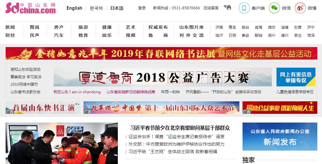 中國山東網(wǎng)是經(jīng)國務(wù)院新聞辦公室批準(zhǔn)成立的全國重點(diǎn)新聞網(wǎng)站,是國家互聯(lián)網(wǎng)信息辦公室批準(zhǔn)可供網(wǎng)站轉(zhuǎn)載新聞的新聞單位,由山東省人民政府新聞辦公室主管,走向世界雜志社主辦。中國山東網(wǎng)以“山東外宣綜合門戶”為網(wǎng)站定位,是山東省委省政府權(quán)威發(fā)布平臺(tái)。中國山東網(wǎng)致力于山東對(duì)外形象的國內(nèi)國際傳播,在關(guān)注用戶個(gè)性化、多樣化、本地化信息需求的同時(shí),充分發(fā)揮全國重點(diǎn)新聞網(wǎng)站的輿論引導(dǎo)影響力,積極傳遞黨和政府的聲音,忠實(shí)反映網(wǎng)絡(luò)民意,為用戶提供及時(shí)、優(yōu)質(zhì)、全面的綜合信息服務(wù)。經(jīng)過十多年的發(fā)展與完善,憑借權(quán)威性、時(shí)效性、服務(wù)性、互動(dòng)性的優(yōu)勢,擁有中、英、日、韓四種語言版本的中國山東網(wǎng)已成為山東頗具影響力的外宣綜合門戶網(wǎng)站。