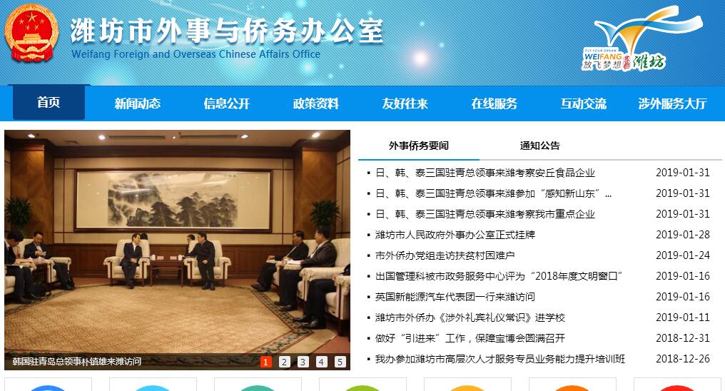 根據(jù)中共山東省委、山東省人民政府批準(zhǔn)的《濰坊市人民政府職能轉(zhuǎn)變和機(jī)構(gòu)改革方案》(魯廳字〔2014 〕 36 號(hào))和中共濰坊市委、濰坊市人民政府印發(fā)的《濰坊市人民政府職能轉(zhuǎn)變和機(jī)構(gòu)改革的實(shí)施意見》(濰發(fā)〔2014 〕 15 號(hào)),設(shè)立濰坊市外事與僑務(wù)辦公室,為市政府工作部門。其主要職責(zé):(一)貫徹執(zhí)行對(duì)外及僑務(wù)法律法規(guī)、方針政策和省、市關(guān)于外事僑務(wù)工作的指示、決定;綜合歸口管理全市外事僑務(wù)工作;負(fù)責(zé)起草有關(guān)地方性法規(guī)、規(guī)章草案;研究擬訂全市外事僑務(wù)工作的政策和規(guī)范性文件并組織實(shí)施;統(tǒng)籌協(xié)調(diào)重要外事僑務(wù)事項(xiàng)。(二)圍繞全市經(jīng)濟(jì)社會(huì)建設(shè)和對(duì)外開放發(fā)展外事僑務(wù)政策、理論和重大問題的調(diào)查研究,為市委、市政府外事僑務(wù)工作決策提供信息、意見和建議;負(fù)責(zé)向涉外、涉僑部門通報(bào)外事、僑務(wù)工作情況;利用對(duì)外交往渠道,為全市經(jīng)濟(jì)建設(shè)和社會(huì)發(fā)展服務(wù)。(三)審核各部門、各單位報(bào)請(qǐng)市委、市政府審批的外事與僑務(wù)文件;承辦市級(jí)領(lǐng)導(dǎo)出訪和邀請(qǐng)外國(guó)相應(yīng)人員來訪的具體報(bào)批事宜;按照授權(quán)審核、審批我市因公臨時(shí)出國(guó)和邀請(qǐng)外國(guó)相應(yīng)人員來訪的有關(guān)事宜;為上述出國(guó)人員出具出國(guó)任務(wù)批件;辦理全市因公出國(guó)人員的證照、簽證和應(yīng)邀來訪外國(guó)人士的簽證通知函電。(四)貫徹執(zhí)行國(guó)家對(duì)港澳工作的方針、政策,指導(dǎo)協(xié)調(diào)與港澳地區(qū)的交流與合作;負(fù)責(zé)因公赴香港、澳門人員的審核、審批,向省外辦申請(qǐng)發(fā)證和簽注等工作。(五)負(fù)責(zé)組織接待來我市訪問的國(guó)賓、黨賓和其他重要外賓;負(fù)責(zé)外國(guó)駐華使節(jié)來我市進(jìn)行活動(dòng)的審核、報(bào)批和管理;統(tǒng)籌安排市級(jí)領(lǐng)導(dǎo)的外事僑務(wù)活動(dòng)。(六)負(fù)責(zé)檢查全市因公出國(guó)(境)團(tuán)組和人員在境外活動(dòng)情況;定期綜合全市因公出國(guó)(境)和邀請(qǐng)外國(guó)人來訪的情況,并向市委、市政府及省主管機(jī)關(guān)報(bào)告。(七)承辦綜合歸口管理我市涉及使領(lǐng)館的重大外事事項(xiàng);指導(dǎo)、協(xié)調(diào)有關(guān)部門和單位與外國(guó)領(lǐng)館的交往活動(dòng)。(八)管理我市與外國(guó)友好城市、友好市(縣)及其他結(jié)好單位的交往活動(dòng),辦理對(duì)外結(jié)好的報(bào)批事宜;指導(dǎo)全市民間對(duì)外交往工作;負(fù)責(zé)對(duì)我市授予外國(guó)友人、港澳同胞、華人華僑“濰坊市榮譽(yù)市民”稱號(hào)相關(guān)事宜的初審工作。(九)牽頭協(xié)調(diào)處理涉外案(事)件及涉外突發(fā)事件;協(xié)助我駐外領(lǐng)事機(jī)構(gòu)處理境外領(lǐng)事保護(hù)案(事)件;指導(dǎo)有關(guān)部門的外國(guó)專家管理和出國(guó)培訓(xùn)工作;處理或協(xié)助有關(guān)單位處理涉及外國(guó)人管理工作的重要事項(xiàng);按規(guī)定辦理外國(guó)記者事務(wù)。(十)負(fù)責(zé)全市外事僑務(wù)干部和涉外人員對(duì)外政策、僑務(wù)政策和外事紀(jì)律教育工作;負(fù)責(zé)外事僑務(wù)干部業(yè)務(wù)培訓(xùn)工作。(十一)配合有關(guān)部門做好對(duì)外宣傳和群眾性外事教育工作;根據(jù)黨中央和國(guó)務(wù)院及主管機(jī)關(guān)的文件和材料,向各部門提供國(guó)際形勢(shì)、對(duì)外政策和重大國(guó)際問題的宣傳材料與表態(tài)口徑。(十二)配合紀(jì)檢、監(jiān)察和保密部門檢查外事紀(jì)律及保密制度的執(zhí)行情況,向有關(guān)部門提出違反外事紀(jì)律問題的處理意見。(十三)審核有關(guān)部門和單位制定的直接涉及華僑華人和歸僑僑眷的有關(guān)政策,報(bào)市政府審定;承擔(dān)副處級(jí)以上領(lǐng)導(dǎo)干部以開展華僑華人工作為主要任務(wù)的出訪審核報(bào)批工作;統(tǒng)籌協(xié)調(diào)有關(guān)部門和社會(huì)團(tuán)體的涉僑工作。(十四)指導(dǎo)歸僑僑眷工作,依法組織協(xié)調(diào)歸僑僑眷、華僑華人合法權(quán)益維護(hù)工作;配合有關(guān)部門研究處置涉僑突發(fā)事件;負(fù)責(zé)歸僑僑眷身份認(rèn)定審核、報(bào)批工作;協(xié)助有關(guān)部門做好華僑華人和歸僑僑眷代表人士的人事安排工作;負(fù)責(zé)華僑回國(guó)定居安置審核、報(bào)批工作。(十五)負(fù)責(zé)指導(dǎo)、開展對(duì)華僑華人及其社團(tuán)的聯(lián)誼和服務(wù)工作;開展香港、澳門特別行政區(qū)僑界的聯(lián)誼工作;按照中央、省、市委關(guān)于對(duì)臺(tái)工作的統(tǒng)一安排,通過僑務(wù)渠道開展對(duì)臺(tái)工作;負(fù)責(zé)外事、僑務(wù)人才隊(duì)伍建設(shè);調(diào)查研究引進(jìn)華僑資金、技術(shù)、華人華僑高級(jí)人才引進(jìn)工作的情況并提出政策建議,指導(dǎo)、推動(dòng)涉僑經(jīng)濟(jì)、科技合作與交流;協(xié)調(diào)涉僑經(jīng)濟(jì)投訴工作;負(fù)責(zé)對(duì)華僑華人捐贈(zèng)財(cái)產(c