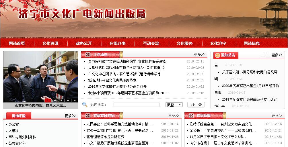 濟(jì)寧市文化廣電新聞出版局主要職責(zé):(一)貫徹執(zhí)行國家、省關(guān)于文化藝術(shù)、廣播電影電視、新聞出版、著作權(quán)的方針政策、法律法規(guī)規(guī)章;擬訂全市文化藝術(shù)事業(yè)、廣播電視業(yè)、新聞出版業(yè)的政策規(guī)定、發(fā)展規(guī)劃并組織實施;負(fù)責(zé)市直文化廣電新聞出版領(lǐng)域體制改革具體實施工作;組織實施文化藝術(shù)、廣播電影電視、新聞出版重點設(shè)施建設(shè)和基層設(shè)施建設(shè)。(二)擬訂全市文化產(chǎn)業(yè)發(fā)展規(guī)劃和政策并組織實施;指導(dǎo)、協(xié)調(diào)全市文化產(chǎn)業(yè)發(fā)展。(三)組織指導(dǎo)文化藝術(shù)創(chuàng)作、生產(chǎn)、科研和宣傳工作,把握正確的輿論導(dǎo)向和創(chuàng)作導(dǎo)向。(四)指導(dǎo)管理全市社會文化事業(yè);指導(dǎo)公共文化服務(wù)事業(yè)和基層文化建設(shè);指導(dǎo)開展群眾文化活動,管理全市性重大文化活動;擬訂全市非物質(zhì)文化遺產(chǎn)保護(hù)規(guī)劃和政策,組織實施非物質(zhì)文化遺產(chǎn)保護(hù)和優(yōu)秀民族文化的傳承普及工作。(五)負(fù)責(zé)全市電影發(fā)行、放映工作,制定全市電影發(fā)行、放映工作的發(fā)展規(guī)劃和管理辦法;負(fù)責(zé)廣播電視、信息網(wǎng)絡(luò)視聽節(jié)目服務(wù)機(jī)構(gòu)和業(yè)務(wù)的監(jiān)管工作;負(fù)責(zé)對從事廣播電影電視節(jié)目制作民辦機(jī)構(gòu)的監(jiān)管工作;監(jiān)管廣播電影電視、信息網(wǎng)絡(luò)視聽節(jié)目和公共視聽載體播放節(jié)目,審查其內(nèi)容和質(zhì)量。(六)負(fù)責(zé)全市文化藝術(shù)、廣播電影電視、新聞出版單位行業(yè)的監(jiān)管;指導(dǎo)文化、廣播電影電視、新聞出版行業(yè)社團(tuán)的業(yè)務(wù)活動;負(fù)責(zé)監(jiān)管從事演藝活動、從事出版活動的民辦機(jī)構(gòu);指導(dǎo)、監(jiān)督全市文化市場綜合執(zhí)法工作;擬定全市“掃黃打非”政策并監(jiān)督實施。(七)負(fù)責(zé)全市新聞單位記者證的審核、申報和管理工作;負(fù)責(zé)國內(nèi)報刊社駐濟(jì)記者站的監(jiān)管工作;組織查處重大新聞違法活動。(八)管理全市出版活動;負(fù)責(zé)對從事出版活動民辦機(jī)構(gòu)的監(jiān)管工作;指導(dǎo)出版物市場經(jīng)營活動的監(jiān)管工作;指導(dǎo)并依法審核出版物的出版計劃和選題;組織指導(dǎo)重點出版物和教科書的出版、印刷和發(fā)行工作;負(fù)責(zé)全市古籍整理出版規(guī)劃并承擔(dān)組織協(xié)調(diào)工作。(九)負(fù)責(zé)全市著作權(quán)管理工作,指導(dǎo)著作權(quán)侵權(quán)案件和涉外侵權(quán)案件的查處工作,調(diào)節(jié)著作權(quán)糾紛,處理涉外著作權(quán)事宜。(十)負(fù)責(zé)全市印刷業(yè)的監(jiān)管工作。(十一)管理對外文化工作,推動港澳臺文化交流,組織實施大型對外文化交流活動。(十二)承辦市委、市政府交辦的其他事項。
