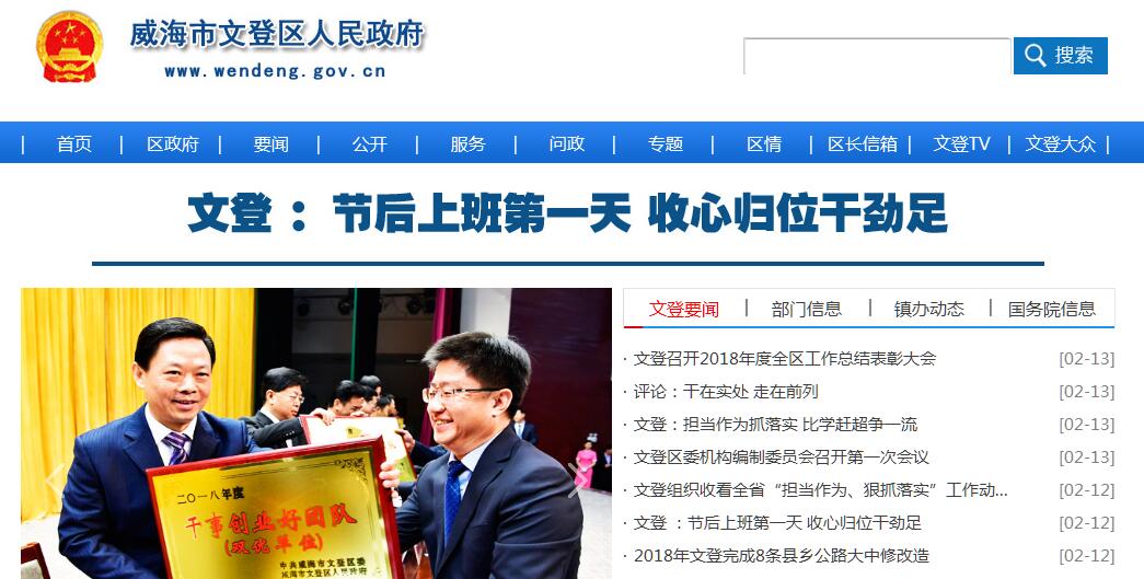 文登區(qū),隸屬于中國(guó)山東省威海市,位于山東半島東部。經(jīng)緯度為北緯36°52′~37°23′、東經(jīng)121°43′~122°19′之間。文登與韓國(guó)隔海相望,處于煙臺(tái)、威海、青島三個(gè)市的中心區(qū)域。因秦始皇東巡“召文人登山”而得名,已有1400多年的建置史,是膠東半島少數(shù)千年古縣之一。文登區(qū)總面積1615平方公里,轄12個(gè)鎮(zhèn)、3個(gè)街道辦事處和兩處省級(jí)開發(fā)區(qū),763個(gè)村居,常住人口65.7萬(wàn),戶籍人口58.2萬(wàn)。文登屬于大陸性季風(fēng)氣候,地形復(fù)雜,丘陵起伏。擁有156公里海岸線、5處高品質(zhì)溫泉和國(guó)家森林公園昆崳山、省級(jí)森林公園天福山、道教圣地圣經(jīng)山、李龍故里回龍山,是中國(guó)溫泉之都、中國(guó)長(zhǎng)壽之鄉(xiāng)、中國(guó)最美養(yǎng)生棲居地、中國(guó)最佳休閑小城、國(guó)際濱海養(yǎng)生之都。2018年10月,入選2018年全國(guó)科技創(chuàng)新百?gòu)?qiáng)區(qū)、全國(guó)新型城鎮(zhèn)化質(zhì)量百?gòu)?qiáng)區(qū)、全國(guó)綠色發(fā)展百?gòu)?qiáng)區(qū)。 2018年11月,入選2018年工業(yè)百?gòu)?qiáng)區(qū)。