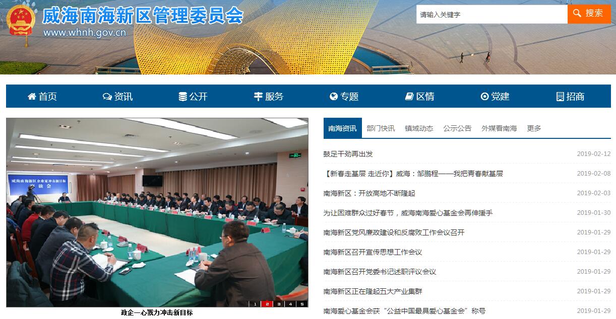 威海南海新區(qū)于2007年3月啟動開發(fā),是國家戰(zhàn)略山東半島藍色經濟區(qū)重點建設的海洋經濟新區(qū)之一,核心起步區(qū)規(guī)劃控制面積160平方公里,規(guī)劃建設面積90平方公里,擁有156公里的海岸線。2011年2月,市委、市政府根據南海新區(qū)建設發(fā)展需要,將侯家鎮(zhèn)南廒村、宋村鎮(zhèn)西海莊、澤頭鎮(zhèn)埠子場村和崔家莊村劃歸南海新區(qū)管理。為保證各項規(guī)劃落實到位,加快南海新區(qū)發(fā)展,2012年5月2日,中共文登市第十三屆委員會第九次常委會議決定,調整完善南海新區(qū)開發(fā)管理體制,成立南海發(fā)展指揮部,由市委副書記張海軍任總指揮,從相關職能部門抽調專人進駐,對指揮部授予市政府相應職權,代表市委、市政府靠前指揮、一線決策,對涉及南海發(fā)展的事項直接做出決定、現(xiàn)場督導調度,有效提升南海新區(qū)開發(fā)速度和發(fā)展水平。2012年9月,成立南海發(fā)展服務中心,將12個職能部門的47個審批事項和10家中介機構,全部集中到南海新區(qū)辦公,一線審批,一站式受理、全過程服務,減少審批環(huán)節(jié)和收費事項,壓縮審批時限,由原來70個工作日壓縮到36個,有效推進南海新區(qū)項目建設速度。2013年1月26日,威海市委決定,設立中共威海市委威海南海新區(qū)工作委員會,作為市委的派出機構,在市委的統(tǒng)一領導下,負責威海南海新區(qū)黨的建設工作。2013年2月26日,文登市召開中共文登市第十三屆委員會第二十五次會議。會議傳達了威海市委關于南海新區(qū)體制理順和干部調整情況。成立威海南海新區(qū)管理委員會,行政上屬于威海市委、市政府的派出單位。2011年1月4日,國務院批復《山東半島藍色經濟區(qū)發(fā)展規(guī)劃》,將南海新區(qū)確定為全省重點建設的三個海洋經濟新區(qū)、三個國家級旅游度假區(qū)、九個集中集約用海片區(qū)之一,標志著南海新區(qū)的開發(fā)建設已經成為國家戰(zhàn)略的組成部分。2012年4月9日,威海市第十四次黨代會明確指出“舉全市之力加快威海南海新區(qū)建設。威海南海新區(qū)要提高產業(yè)承載能力,引進發(fā)展高端項目,培育優(yōu)勢特色產業(yè),打造成為未來發(fā)展的重要增長極”。2013年3月4日,《威海南海海洋經濟新區(qū)發(fā)展規(guī)劃》獲山東省發(fā)改委批復。不僅體現(xiàn)了威海市重點區(qū)域一體化發(fā)展在國家、省宏觀發(fā)展大局中得到了認可,而且也為南海發(fā)展進行了戰(zhàn)略定位,全面升檔提速。2013年8月20日,威海市政府正式印發(fā)《威海市人民政府關于加強市域一體化規(guī)劃工作的實施意見》(威政發(fā)〔2013〕43號),指出要重點做好“威海南海新區(qū)等重點區(qū)域的總體規(guī)劃及重點功能核心區(qū)的城市設計”等工作,并在《威海市城市化發(fā)展綱要》中提出“南海新區(qū)要加強與威海主城區(qū)聯(lián)動,建設現(xiàn)代化、國際化、生態(tài)化副中心城市”,明確威海市主城區(qū)與威海南海新區(qū)相向發(fā)展,打通威海南北先進制造業(yè)軸向帶,并且實現(xiàn)點式帶動、環(huán)海發(fā)展的目標要求。2014年11月24日,威海市出臺《關于三年突破南海新區(qū)發(fā)展的意見》(威發(fā)〔2014〕18 號),明確提出了要把威海南海新區(qū)建設成生態(tài)良好、生產發(fā)達、生活幸福的現(xiàn)代化海洋經濟新區(qū),力爭升級為國家級新區(qū)的目標要求。2017年3月1日,威海市第十五次黨代會指出“加快突破南海新區(qū),強化石島管理區(qū)、乳山濱海新區(qū)的產業(yè)、基礎設施、公共服務和生態(tài)支撐,加快管理體制創(chuàng)新,向特色中小城市發(fā)展,打造南部城市隆起帶”。2018年2月23日,威海市委在《中共威海市委 威海市人民政府關于進一步支持南海新區(qū)創(chuàng)新發(fā)展的意見》中指出“深入落實進一步突破南海新區(qū)發(fā)展的戰(zhàn)略部署,打造順暢高效、充滿活力、服務便捷的新型管理體制和運行機制,推動南海新區(qū)創(chuàng)新發(fā)展、持續(xù)發(fā)展、領先發(fā)展”。在規(guī)劃布局上,南海新區(qū)主要建設三大功能區(qū):東部依托南海新港,建設臨港產業(yè)區(qū),重點發(fā)展裝備制造、臨港物流、精細化工等臨港產業(yè);西部依托萬米金色沙灘、萬畝翠綠松林以及島礁等資源,建設旅游度假區(qū),重點發(fā)展海洋文化旅游、濱海度假養(yǎng)生等高端旅游業(yè);中部建設綜合商務區(qū),重點發(fā)展行政辦公、金融商務、科教創(chuàng)新等現(xiàn)代服務業(yè)。通過三區(qū)對接聯(lián)動,實現(xiàn)互促共融發(fā)展。南海擁有豐富的濱海岸線資源、旅游資源和土地資源,區(qū)位優(yōu)勢明顯,發(fā)展?jié)摿薮?。在整體定位上,確定為現(xiàn)代制造業(yè)基地和濱海度假新區(qū)。