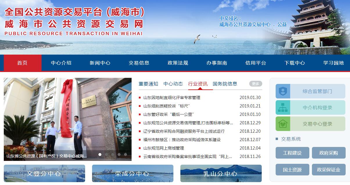 根據(jù)威編﹝2016﹞26號(hào)文件,組建威海市公共資源交易中心,掛市政府采購(gòu)中心牌子,為市政務(wù)服務(wù)中心管理辦公室所屬公益一類財(cái)政撥款事業(yè)單位,副處級(jí)規(guī)格。將文登、榮成、乳山原有公共資源交易平臺(tái)整合為市公共資源交易中心的分中心,為區(qū)市政府直屬正科級(jí)公益一類事業(yè)單位。主要職責(zé)是:負(fù)責(zé)公共資源交易平臺(tái)的建設(shè)、管理和維護(hù);為公共資源交易活動(dòng)提供場(chǎng)所、設(shè)施和服務(wù);提出公共資源交易管理制度、交易規(guī)則建議方案;受委托或授權(quán)實(shí)施公共資源交易目錄范圍內(nèi)的交易工作;收集、發(fā)布和儲(chǔ)存各類公共資源交易信息,建立公共資源交易信用檔案,為公共資源交易的綜合管理、行政監(jiān)督、監(jiān)察審計(jì)提供支持等。根據(jù)威編辦﹝2016﹞51號(hào)文件,威海市公共資源交易中心內(nèi)部設(shè)立綜合科、業(yè)務(wù)保障科、政府采購(gòu)科、工程交易科、土地和礦產(chǎn)交易科、產(chǎn)權(quán)交易科。